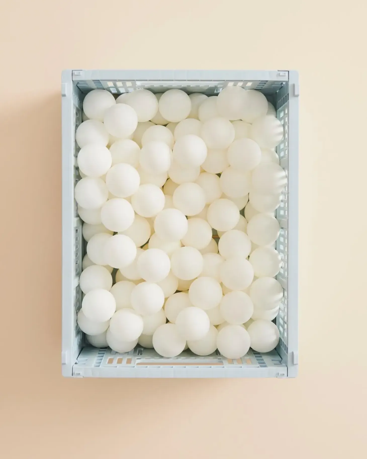 Kassens robuste konstruktion i genanvendt PP gør den både let og slidstærk. Du kan stable flere kasser oven på hinanden for at udnytte pladsen optimalt, og den bløde blå farve tilføjer et roligt designelement til rummet.