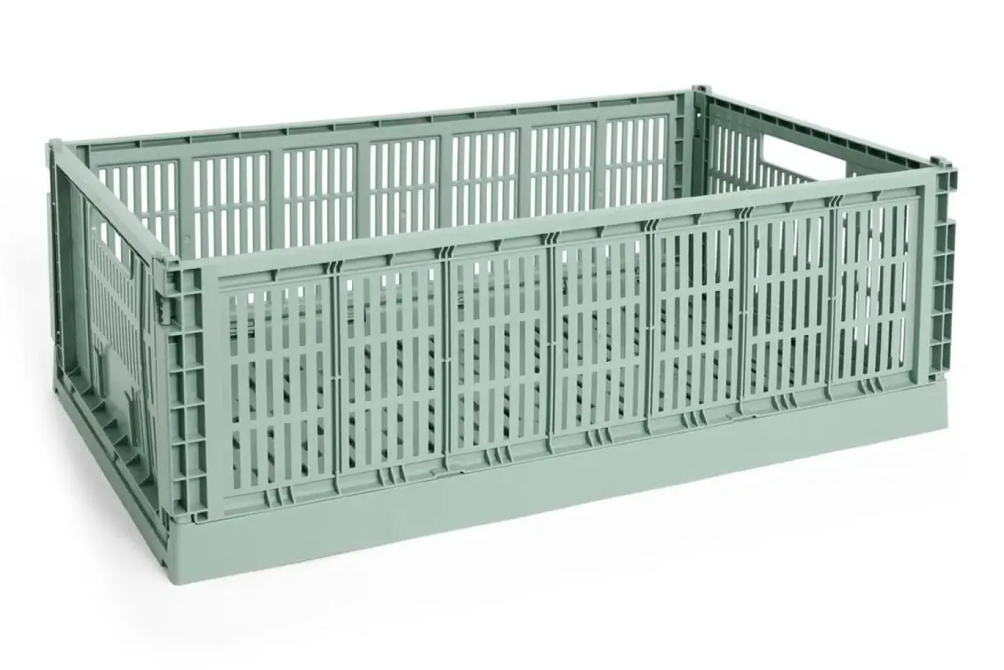 Rummelig opbevaringskasse i salviegrøn med praktiske håndtag og det velkendte HAY-logo. Med målene 68 x 42 x 24 cm får du god plads til alt fra tøj til hobbyting. Fremstillet af 100 % genanvendt PP.