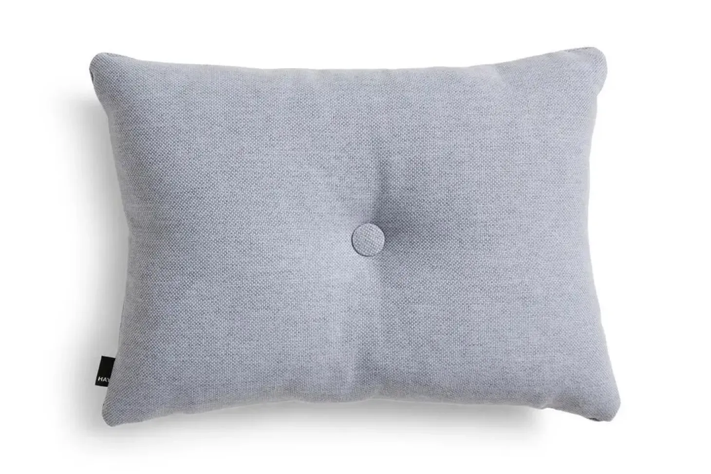 Denne rektangulære pude fra Hay kombinerer et karakteristisk tekstureret stof med en lavendelnuance. Med sine 60 x 45 cm og en knap i midten skaber den både visuel og taktil interesse i din indretning.
