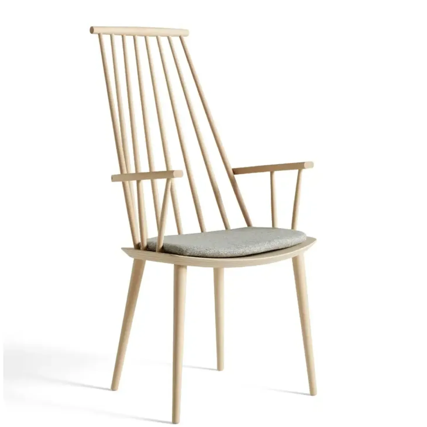 Hyndens dimensioner er specifikt tilpasset J110-stolen fra HAY, hvilket sikrer en præcis pasform. Polstringen af tekstil og polyurethan-skum er valgt med omhu for at give dig den rette balance mellem blødhed og støtte i det daglige.