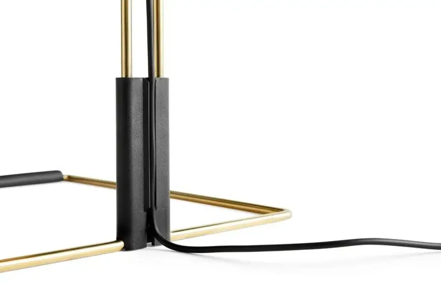 Lampens bomuldsskærm sikrer en god spredning af lyset, mens den polerede messingramme giver et let udtryk. De kompakte mål gør, at lampen passer godt ind på både skrivebordet og natbordet.