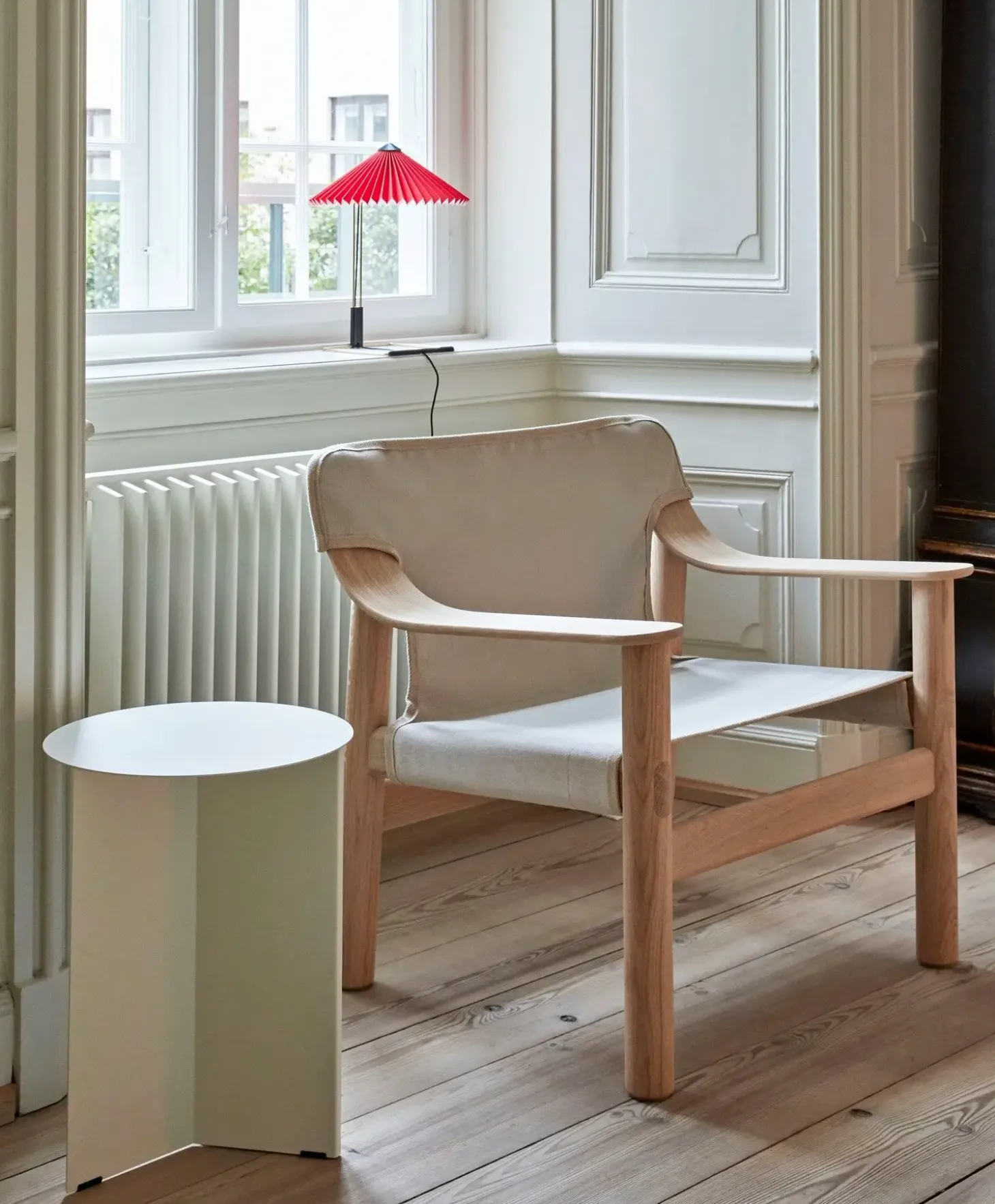 Den ståltrådsbøjede ramme i poleret messing giver denne bordlampe fra HAY et særligt udtryk. Med en højde på 52 cm og en diameter på 38 cm passer den godt til både arbejdsbordet og sidebordene.