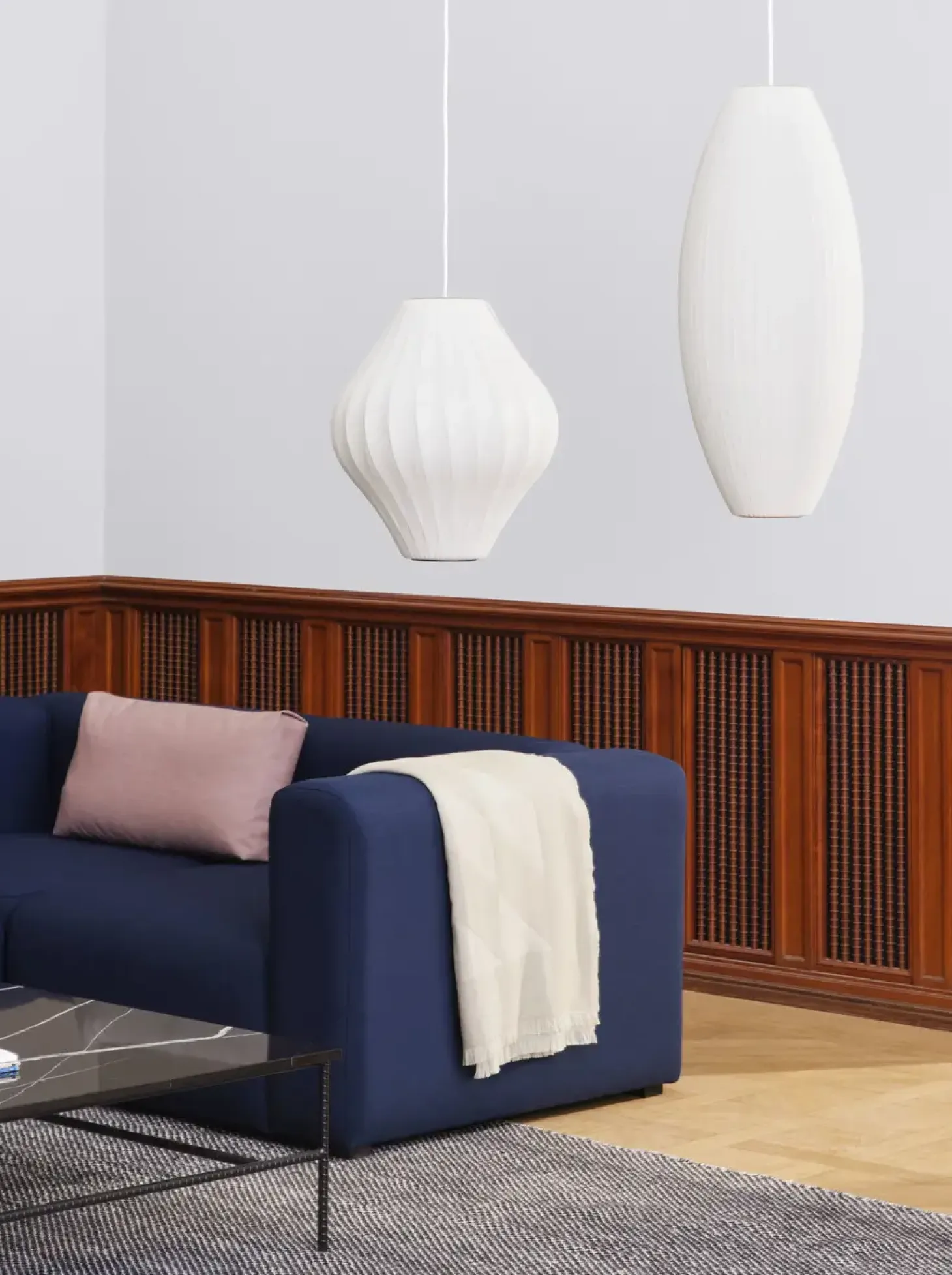 Denne store Nelson Cigar Bubble-lampe i off-white spreder et blødt og jævnt lys i rummet. Med en størrelse på 127 x 47,5 x 47,5 cm skaber den en markant tilstedeværelse.