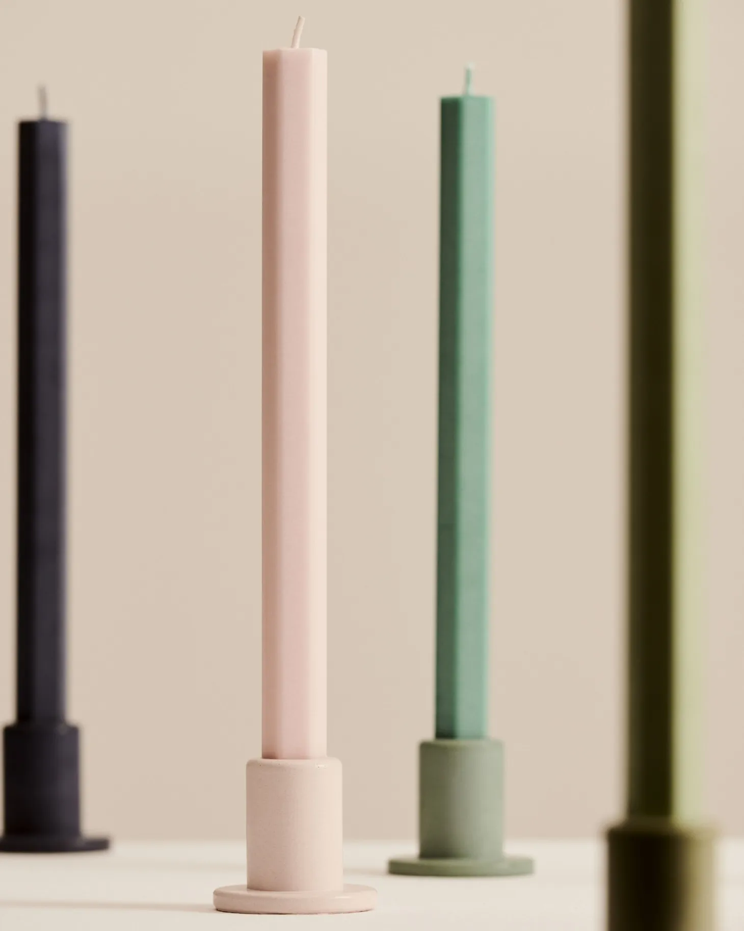 Dette sæt af fire firkantede stearinlys fra Hay er Svanemærket-certificeret. Den matte finish og pastelfarverne kan tilføje en ny dimension til din indretning.