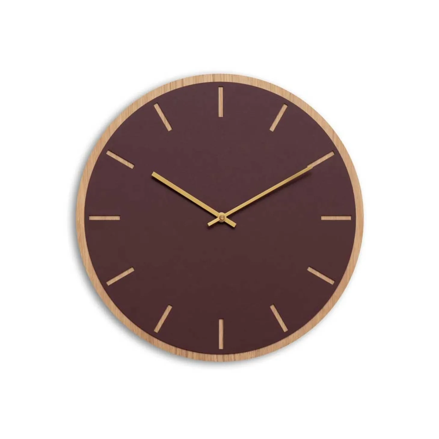 Farve: Eg kant, burgundy rød baggrund, guld visere