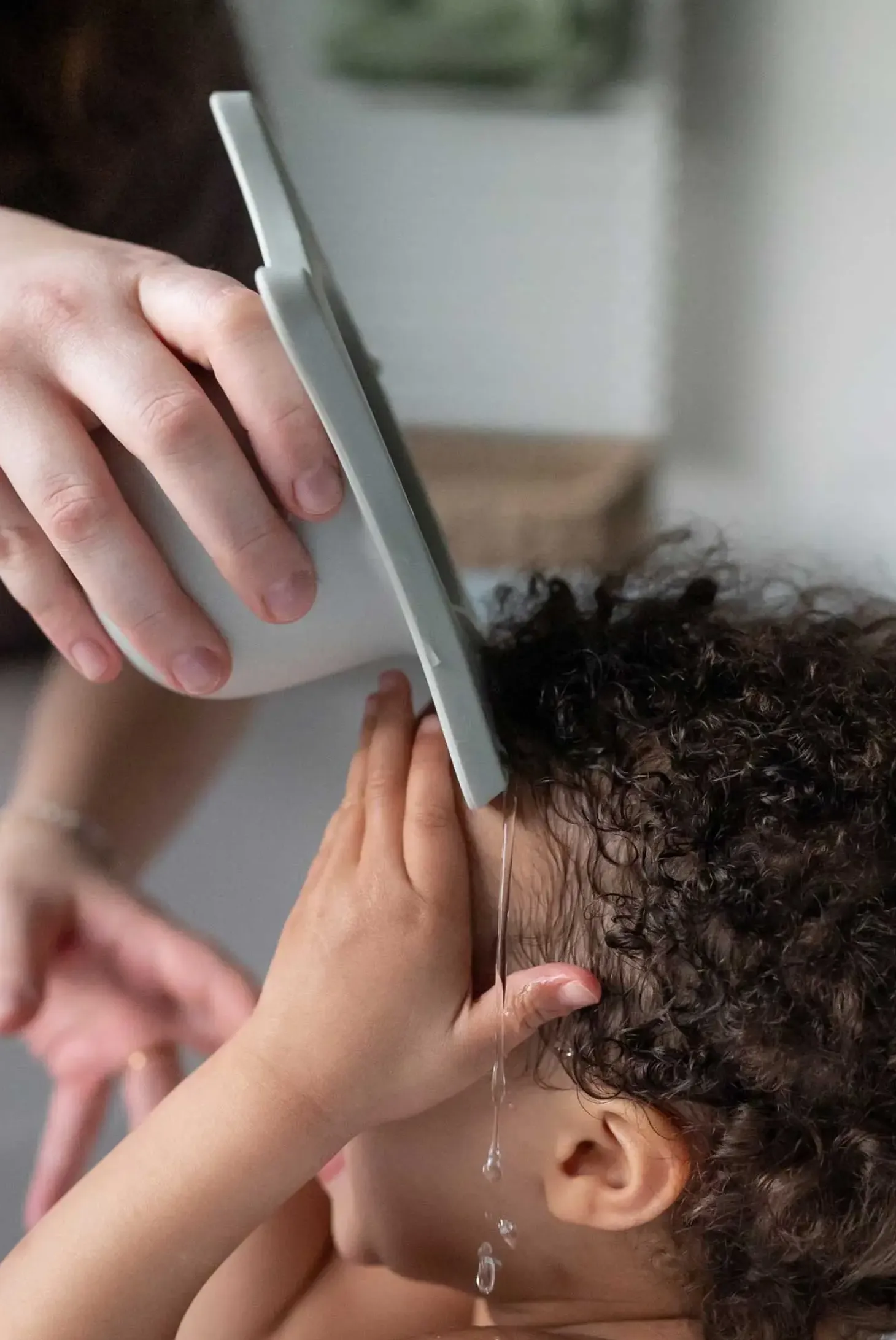 Hvis dit barn protesterer ved hårvask, fordi vand og sæbe løber ned i ansigtet, kan denne badehjælper ændre rutinen. Den fleksible silikone tilpasser sig barnets hovedform og skaber en barriere mod rindende vand. Det betyder færre tårer og mere ro under badet.
