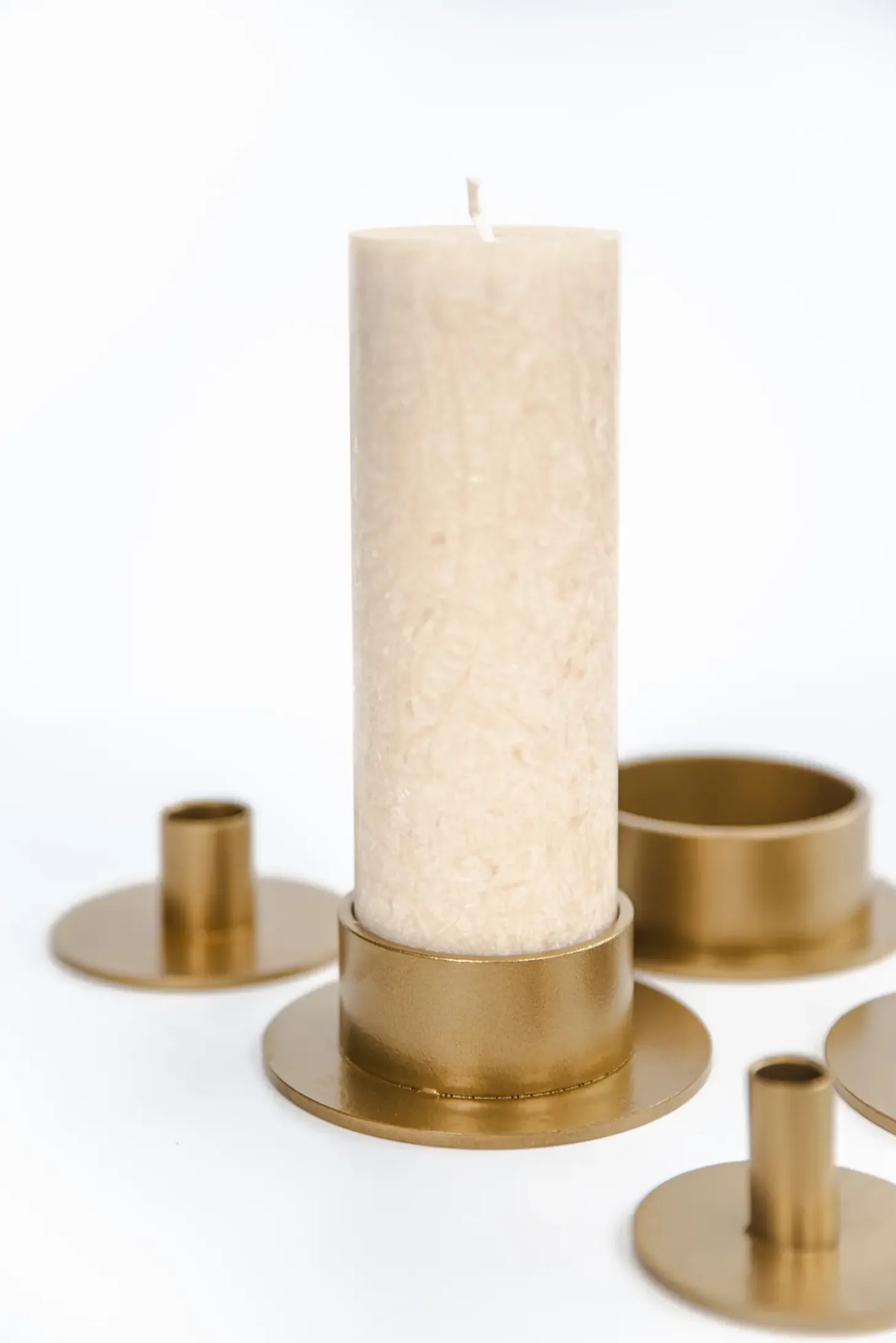 Denne lysestage er håndlavet og bærer præg af traditionelt håndværk fra Kunstindustrien. Den gyldne farve tilføjer varme til dit bord eller vindueskarm, mens den cylindriske form med flad bund sikrer, at lyset står stabilt. Med en diameter på 5 cm passer den til standard bloklys.