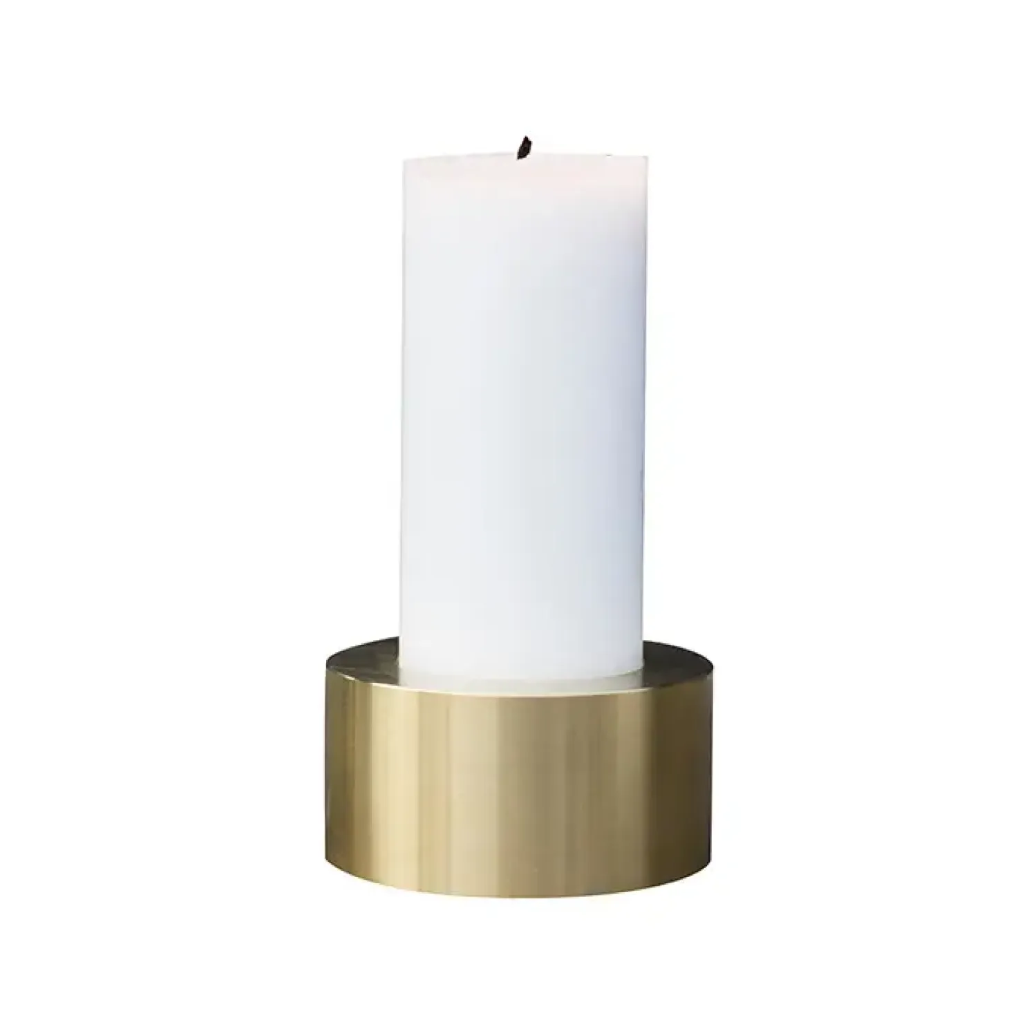 Denne lysestage fra Kunstindustrien er fremstillet af massiv messing, hvilket giver både holdbarhed og en skinnende, metallisk finish. Materialet sikrer, at lysestagen kan bruges år efter år uden at miste sin karakter. Den cylindriske form og det metalliske udseende passer ind i både moderne og klassiske boligindretninger.