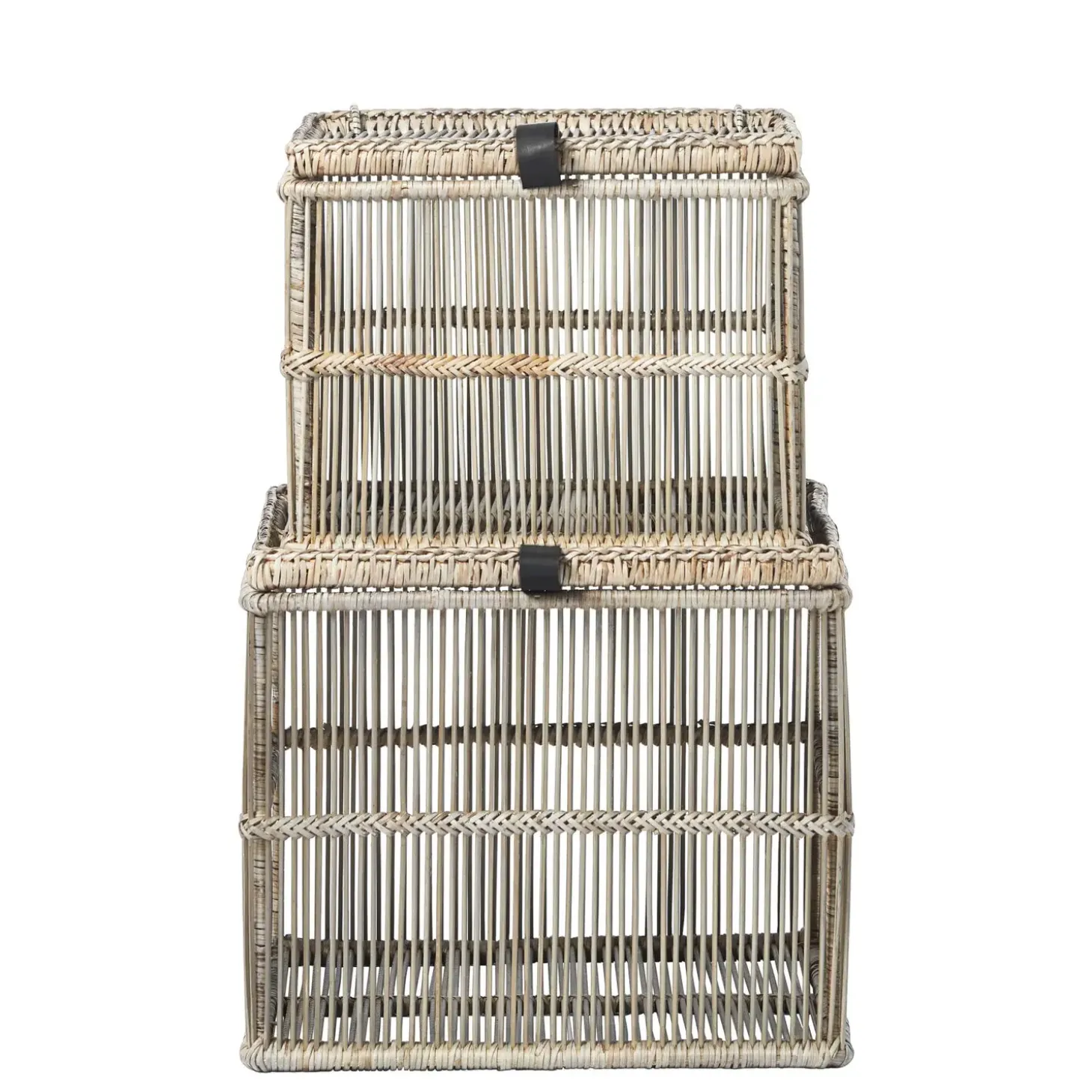 Mål: . Farve: natur. Håndflettet kurvesæt af rattan og bambus i høj kvalitet fra vores Norah serie. Kendetegnet ved denne serie er brugen af naturmaterialer som f.eks. bambus og rattan. Det er begge planter, der vokser hurtigt, er nemme at genplante og er et stærkt materiale til boliginteriør. Materialerne flettes og formes med stor præcision og passion – et produkt fra Norah serien kan tage alt fra 1 dag til en hel uge at færdiggøre. Det ser vi som et kvalitetsstempel, der sikrer dig et produkt, som du vil blive glad for i mange år! Hele vores Norah serie er flettet af hjemmegående kvinder fra Myanmar. I Myanmar har man en lang tradition for, at kvinden skal tage sig af hjemmet og børnene, når hun bliver mor. Derfor vil det kun være manden, som kan brødføde familien. Arbejdet med fletning af boliginteriør giver kvinderne mulighed for en ekstra indkomst. Vi har valgt en leverandør, som sørger for at give kvinderne de bedste vilkår, når de skal arbejde hjemmefra. De får adgang til de bedste materialer, træning og redskaber. Det gør dem til dygtige kunsthåndværkere, som er uundværlige for vores leverandør – arbejdsforholdene vil de gerne sprede til andre udsatte områder i Myanmar. Når du køber boliginteriør fra Norah serien, så er du med til støtte de hårdtarbejdende kvinder – sammen er vi med til at skabe bedre levevilkår for dem, som har brug for det! Det er Lene Bjerres mission!