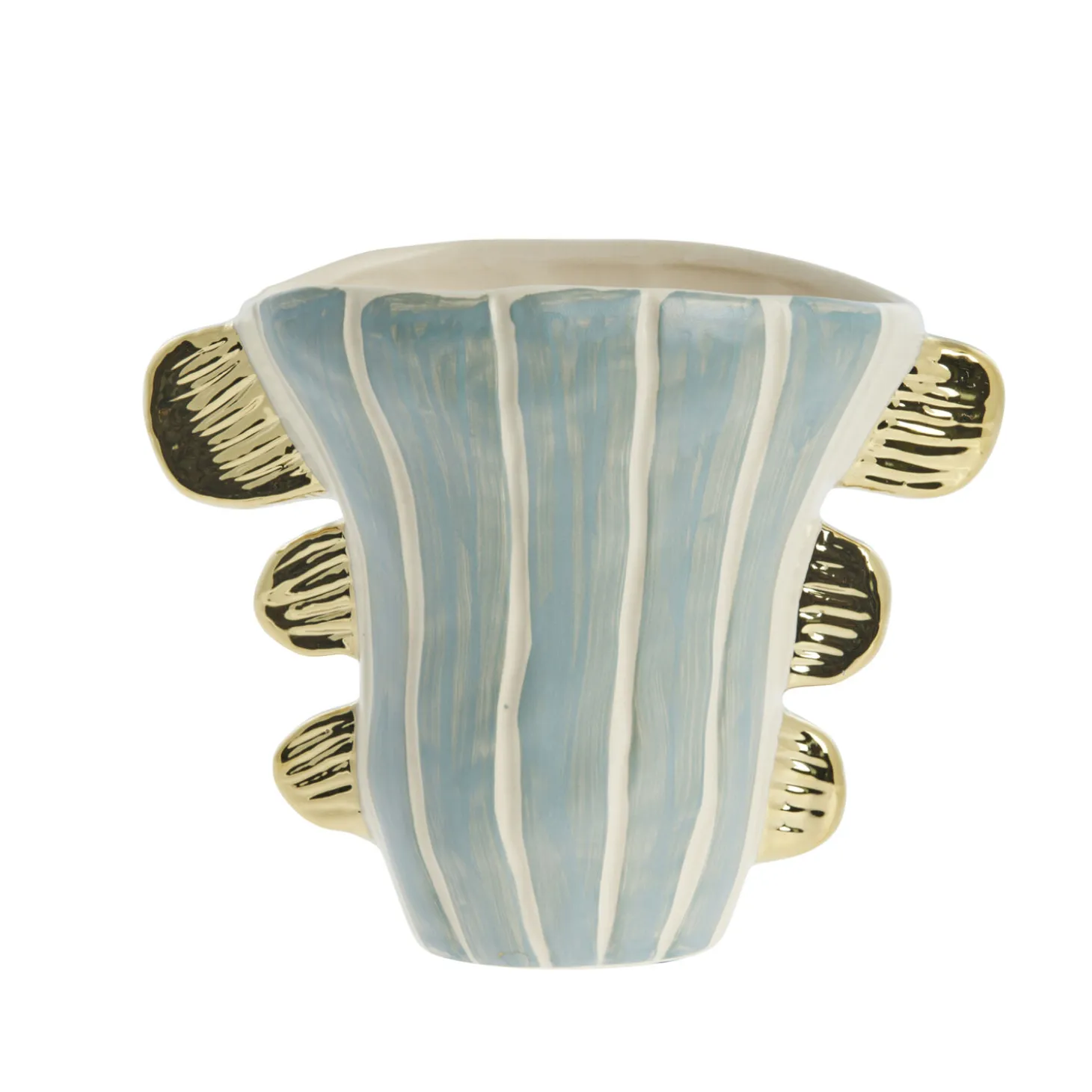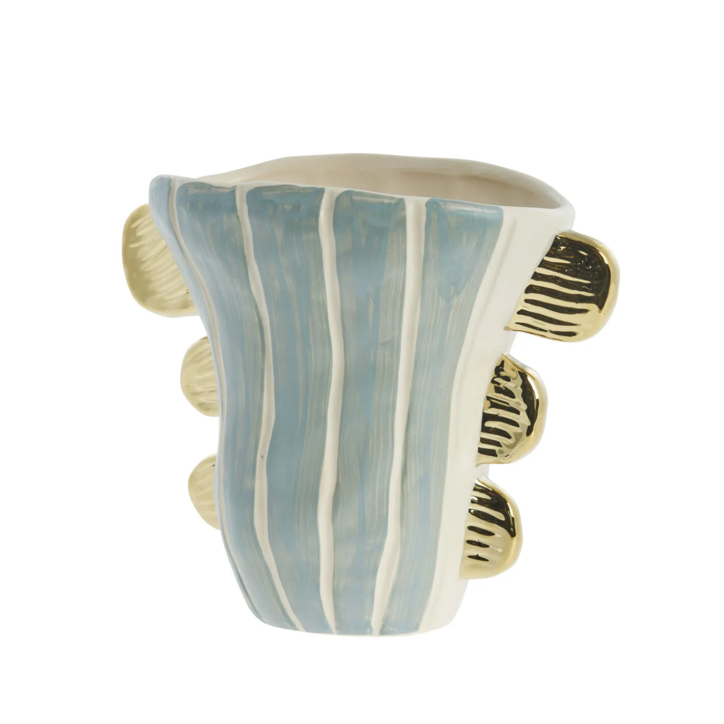 Valentina vase fra Lene Bjerre er den perfekte tilføjelse til ethvert hjem og skaber et elegant og majestætisk udtryk i ethvert rum. Den er omhyggeligt udformet med omtanke for detaljerne og er lavet af keramik med gulddetaljer, der giver den et kongeligt præg. Uanset hvor du stiller den, vil den øjeblikkeligt blive rummets midtpunkt.