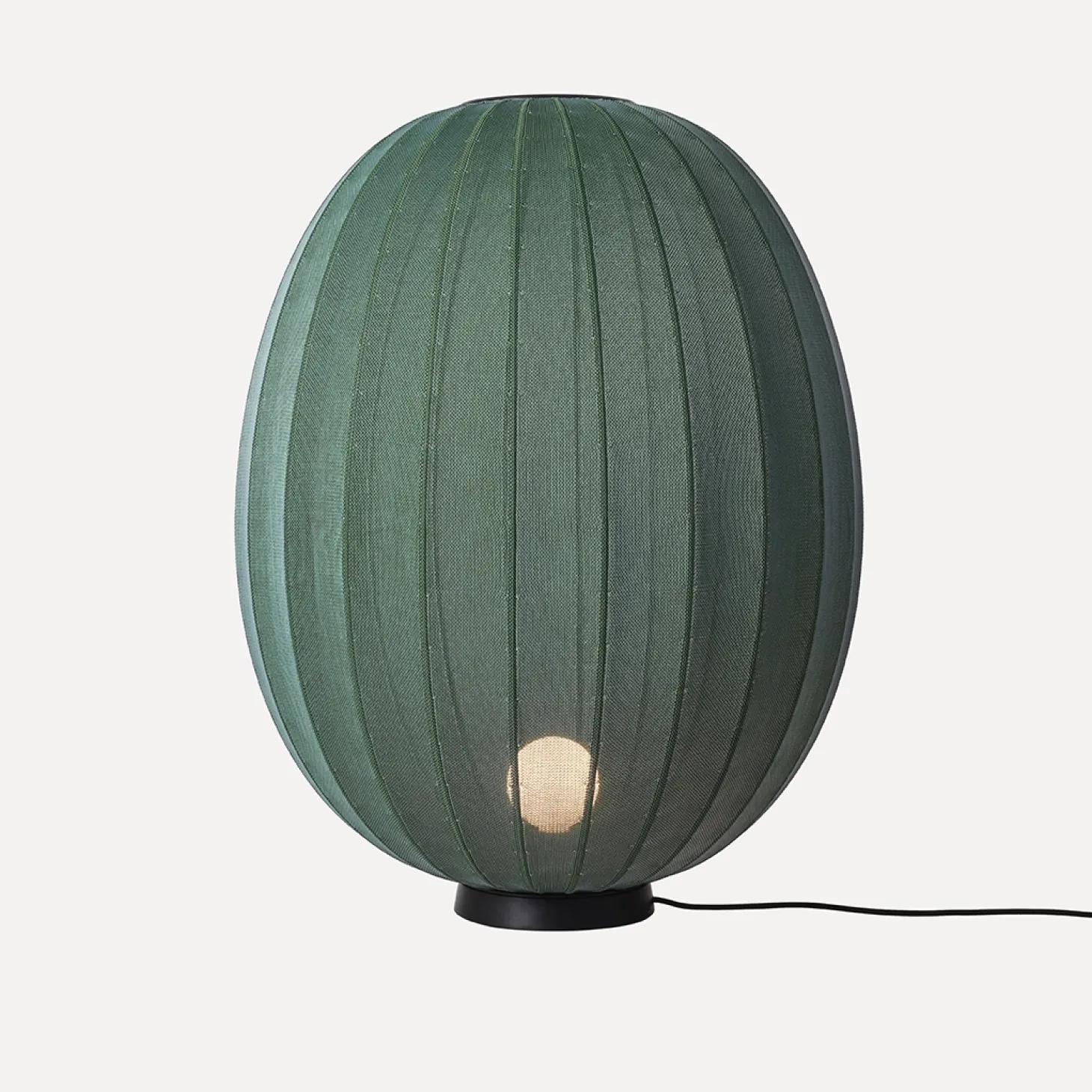 Fremstillet i Danmark med fokus på håndværk. Den strikkede konstruktion giver jævn lysfordeling og reducerer øjentræthed. Materialet kombinerer sikkerhed og holdbarhed. Den mørkegrønne farve giver lampen et roligt udtryk.