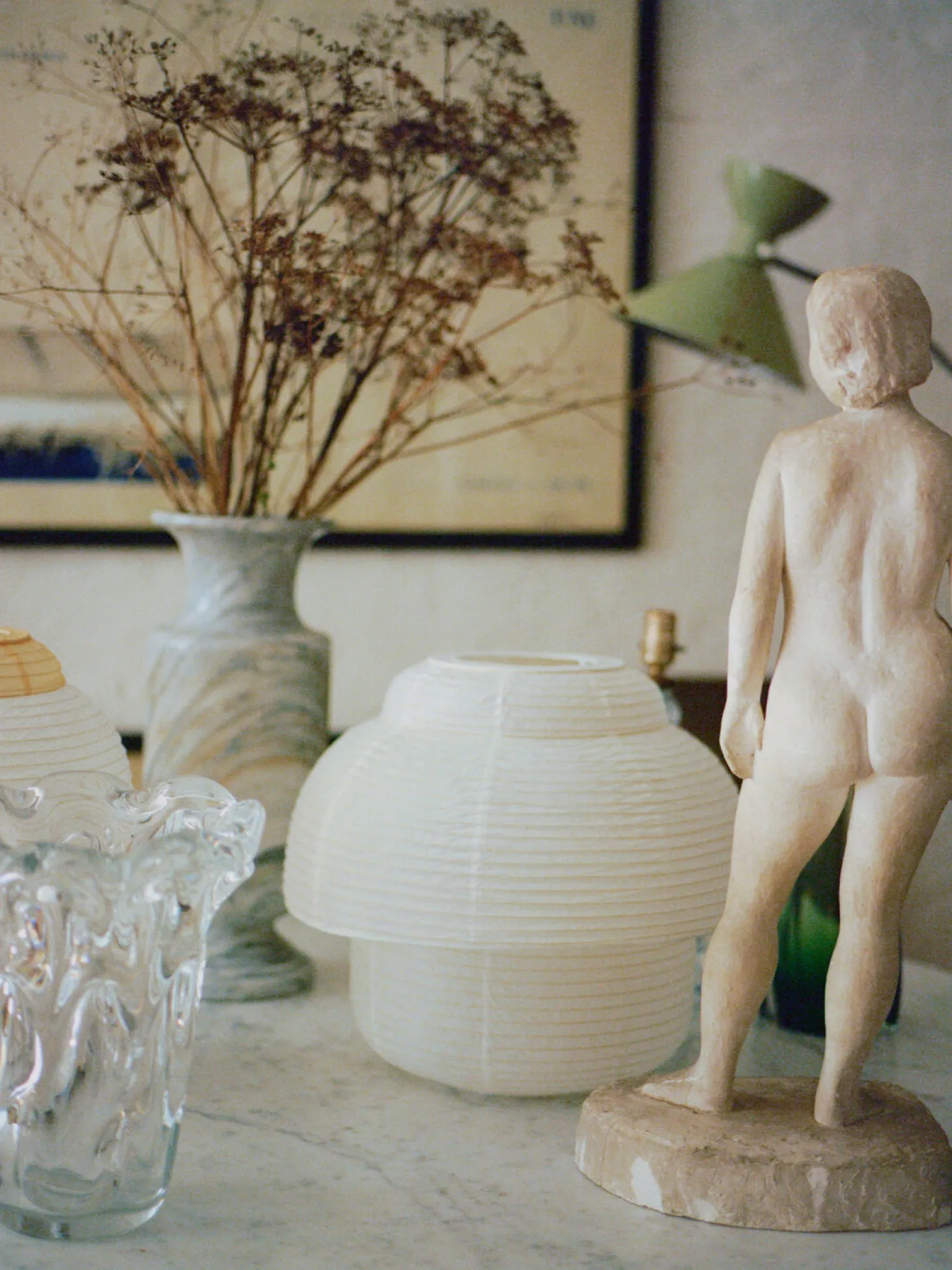 Denne rispapirlampe med en diameter på 40 cm og en højde på 34 cm skaber et behageligt lyspunkt i dit rum. Den moderate størrelse gør den velegnet til forskellige ophængningshøjder og rumstørrelser. Designet af Nina Bruun fokuserer på balancen mellem form og funktion, hvilket gør lampen til en alsidig belysningsløsning.