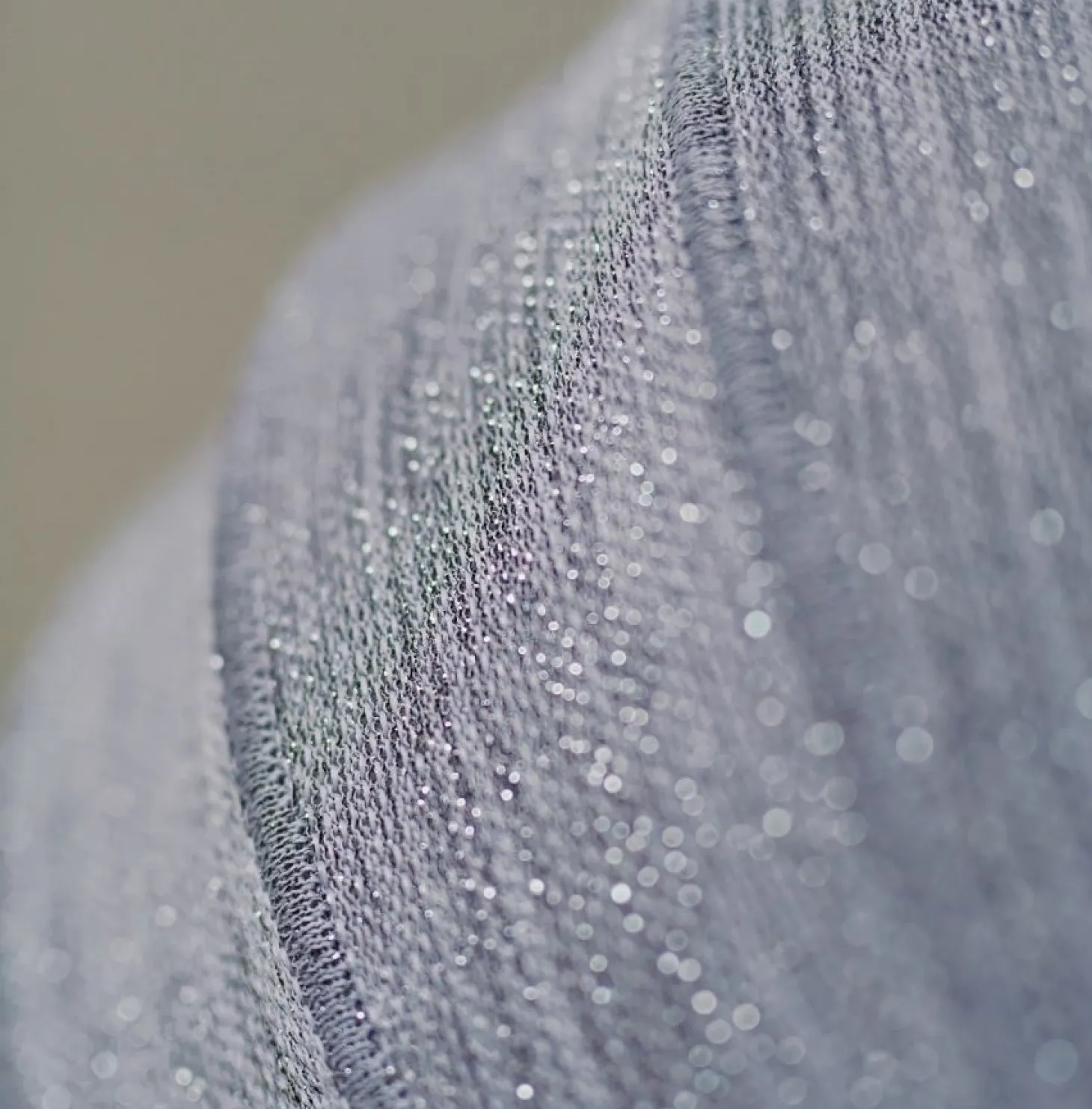 Lampeskærmen er resultatet af håndværk og teknologi. Den brandhæmmende polyester giver sikkerhed, mens strikketeknikken skaber en tekstur, der fremhæver glimmereffekten fra forskellige vinkler.