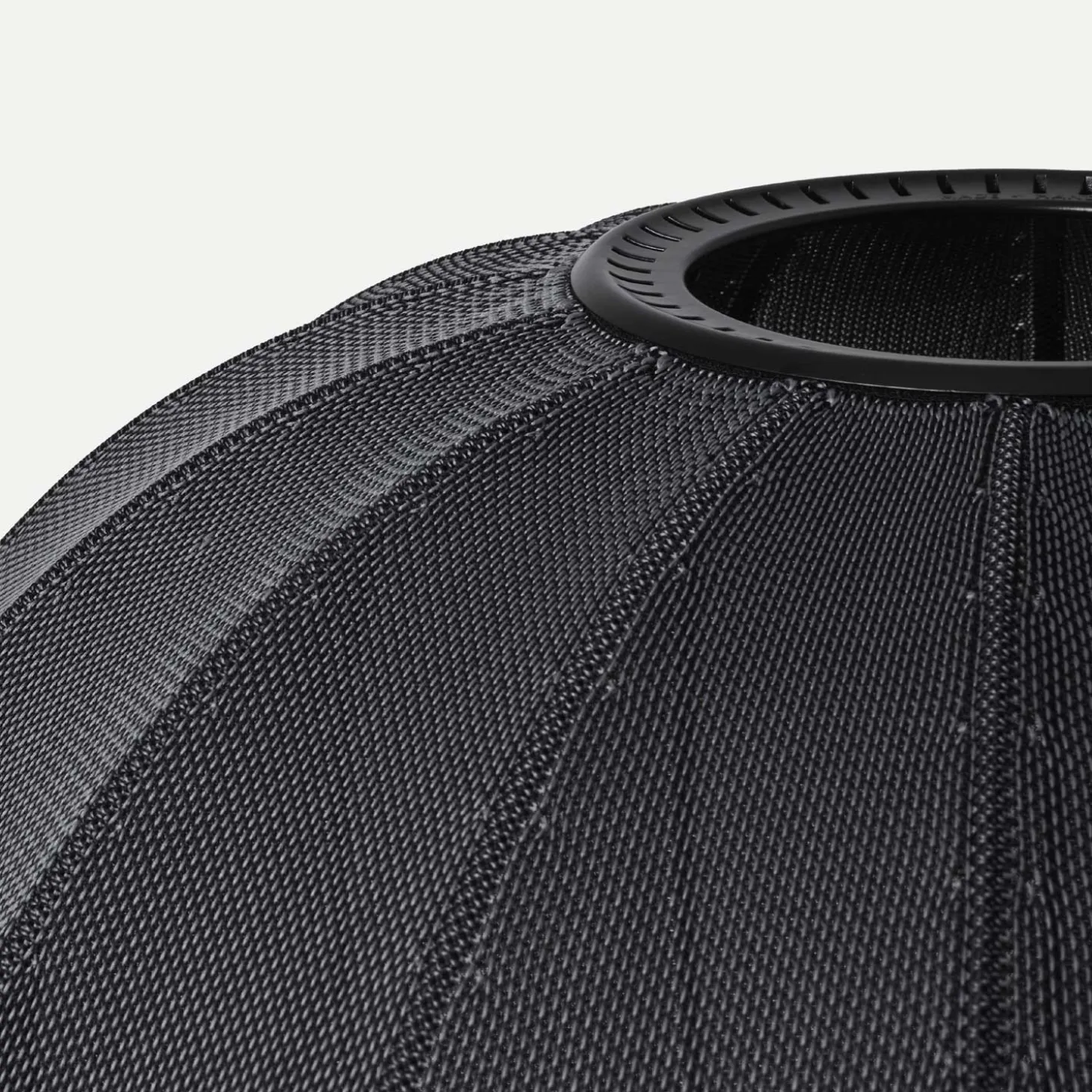 Den 3D-strikkede konstruktion er fremstillet af genanvendt polyester med brandhæmmende egenskaber. Materialet giver lampen en let fornemmelse, mens den sorte farve sikrer et udtryk, der passer ind i forskellige indretningsstile.