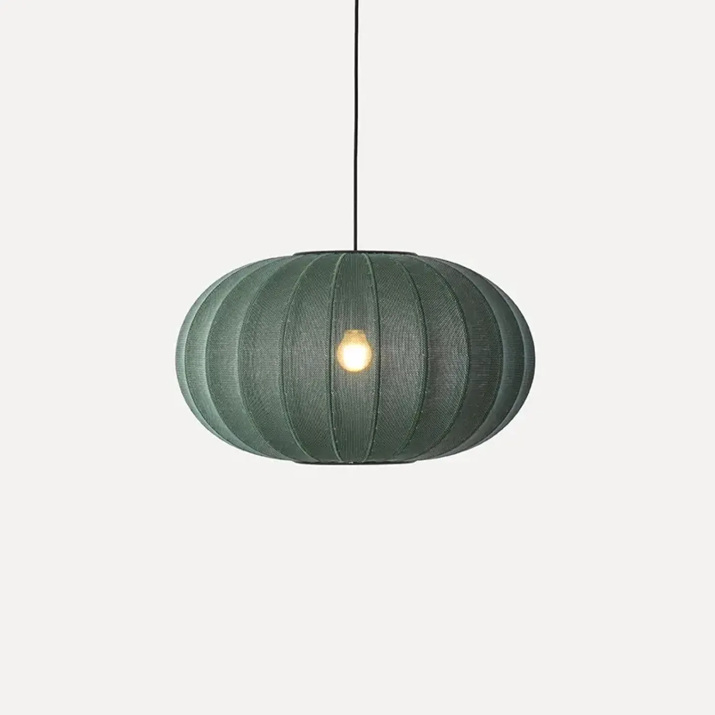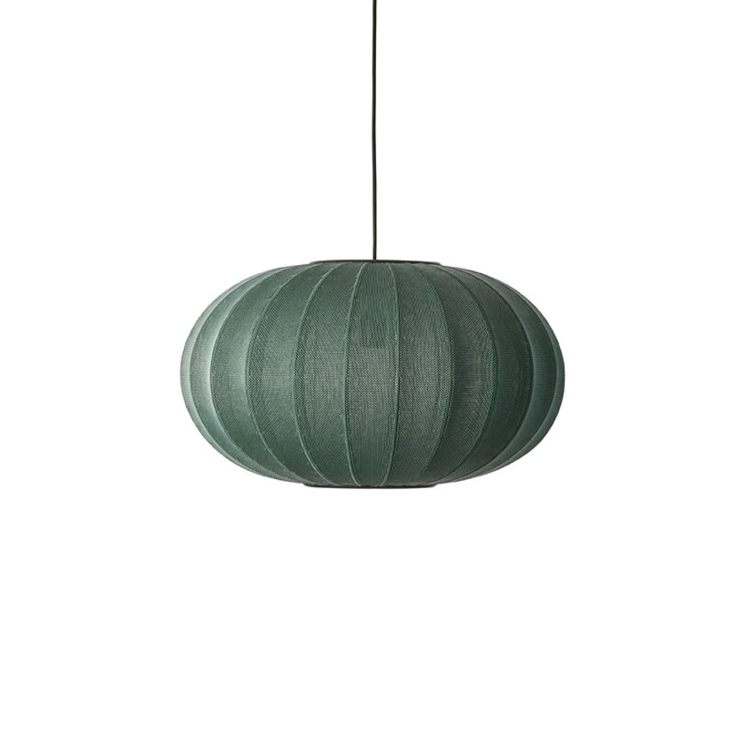 Lampeskærmen er fremstillet af 3D-strikket, brandhæmmende genanvendt polyester. Dette sikrer en holdbar konstruktion og giver et jævnt lys. Den grønne nuance passer til mange indretningsstile og kan hjælpe med at skabe en rolig atmosfære i rummet.