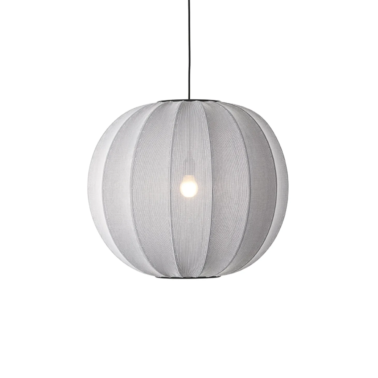 Knit-Wit pendlen kombinerer håndværk med moderne design. Det strikkede materiale af genanvendt polyester skaber særlige lysmønstre, mens sølvfinishen passer til mange indretningsstile.