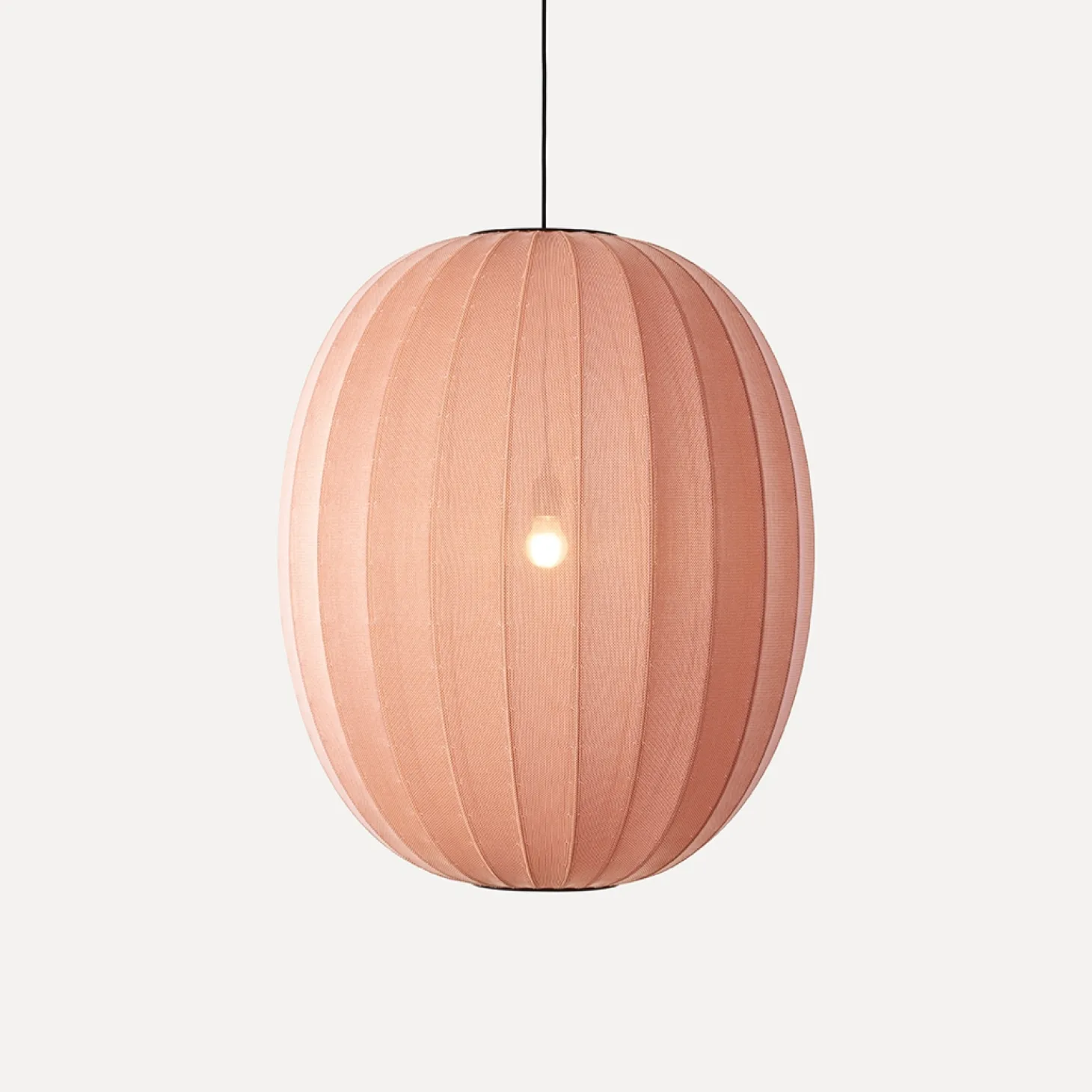 Materialet er brandsikkert, hvilket gør lampen velegnet til både hjemmet og offentlige rum. Koralfarven tilfører varme til indretningen, mens den strikkede overflade skaber et interessant udtryk, der passer til forskellige stilarter.