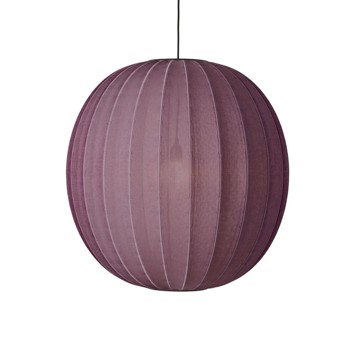 Du bemærker et særligt spil i lyset, når det filtreres gennem den strikkede struktur. Burgunderfarven tilfører et varmt udtryk til dit rum, mens den runde form sikrer en god spredning af lyset.