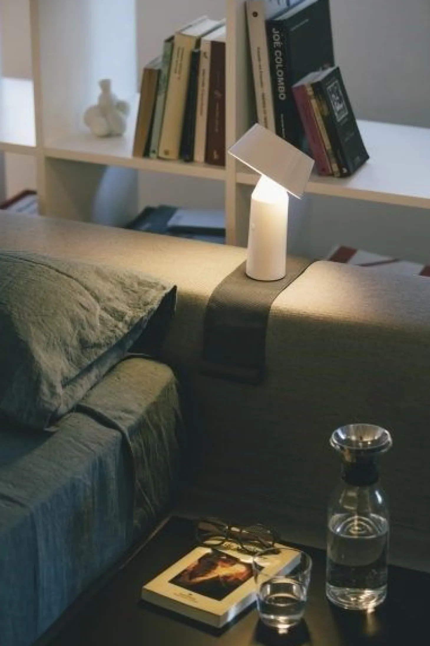Bordlampen er opladelig og vejer ikke så meget, så den er nem at tage med på farten.