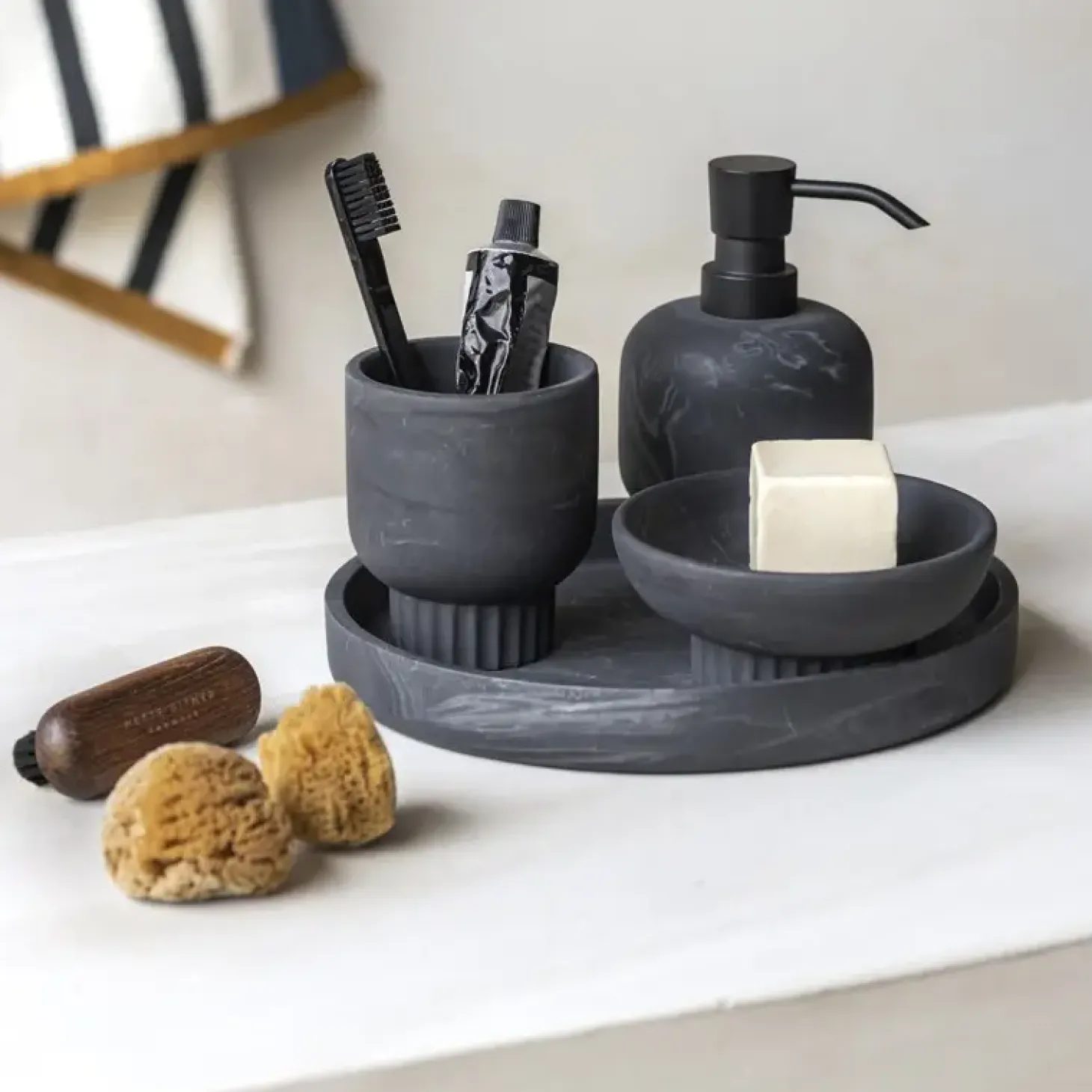Du kan kombinere sæbeskålen med matchende dispensere, tandkrus og andet .