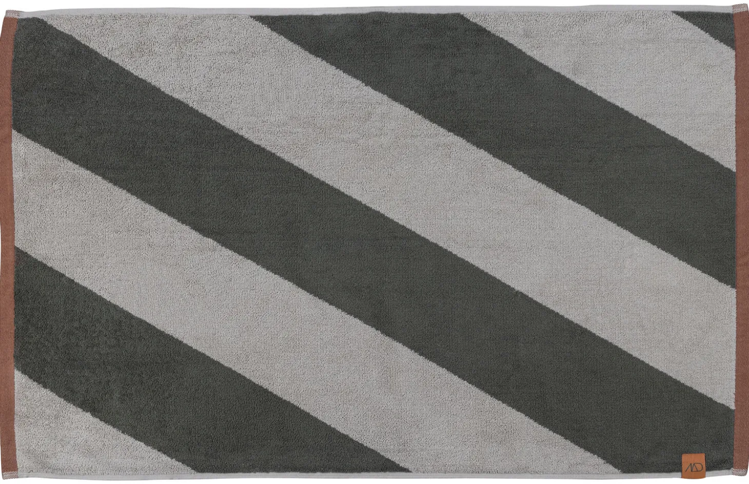 Giv dit badeværelse et stilfuldt løft med DIAGONAL-bademåtten fra Mette Ditmer. De diagonale striber i mørk oliven og sand skaber en rolig og jordnær farvepalette, der passer perfekt ind i både moderne og klassiske indretninger. Den teglrøde bort giver måtten en elegant finish, mens den orange strop tilfører et legende touch og gør det nemt at hænge måtten op til tørring.Fremstillet af økologisk bomuld og OEKO-TEX® 100-certificeret, er DIAGONAL-bademåtten blød og behagelig under fødderne. Den absorberer effektivt fugt og hjælper med at holde badeværelset sikkert ved at reducere risikoen for glatte gulve.For optimal absorberingsevne anbefales det at lægge bademåtten i blød i koldt vand i 24 timer inden første vask. En perfekt kombination af funktionalitet og æstetik, der gør din daglige rutine lidt mere luksuriøs.