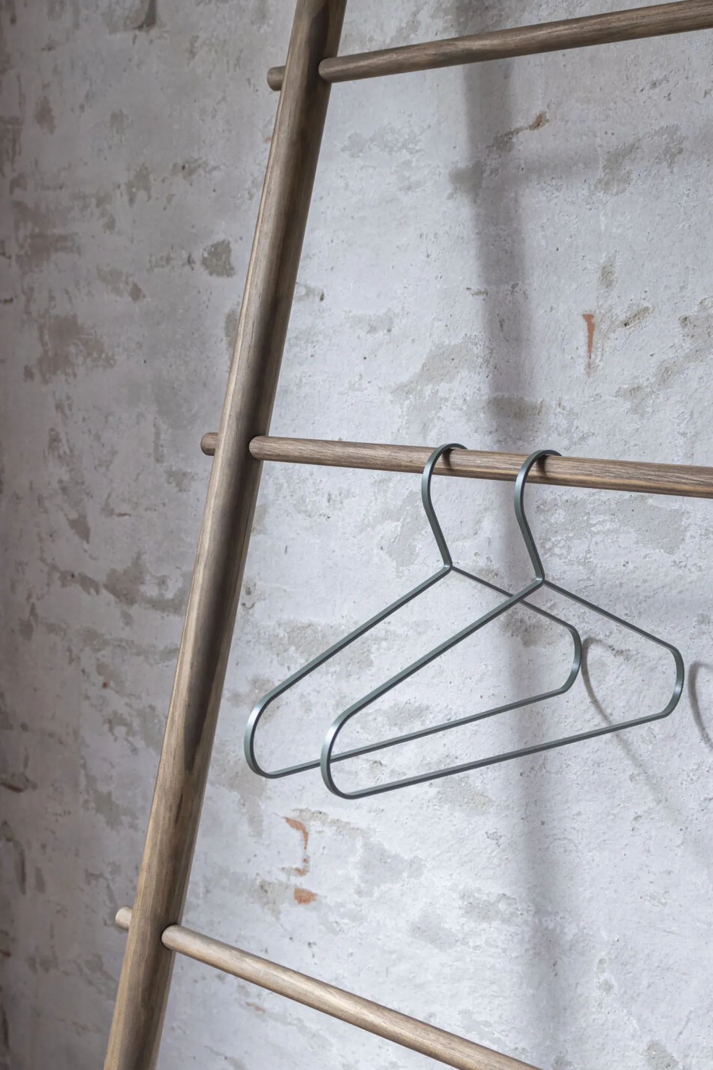 Opgrader din garderobe med de smukke HANG-IT-bøjler fra Mette Ditmer. Den afdæmpede timian grønne farve skaber et harmonisk og roligt udtryk, der passer perfekt ind i garderoben, entreen eller soveværelset.Bøjlerne er fremstillet af kraftigt pulverlakeret metal, der sikrer høj kvalitet og lang holdbarhed. Pakken indeholder to bøjler i samme farve, men du kan også mikse dem med andre farver for at skabe et legende og unikt look. Det indgraverede logo er en subtil detalje, der understreger det gennemtænkte design, hvor der er tænkt på selv de mindste detaljer.