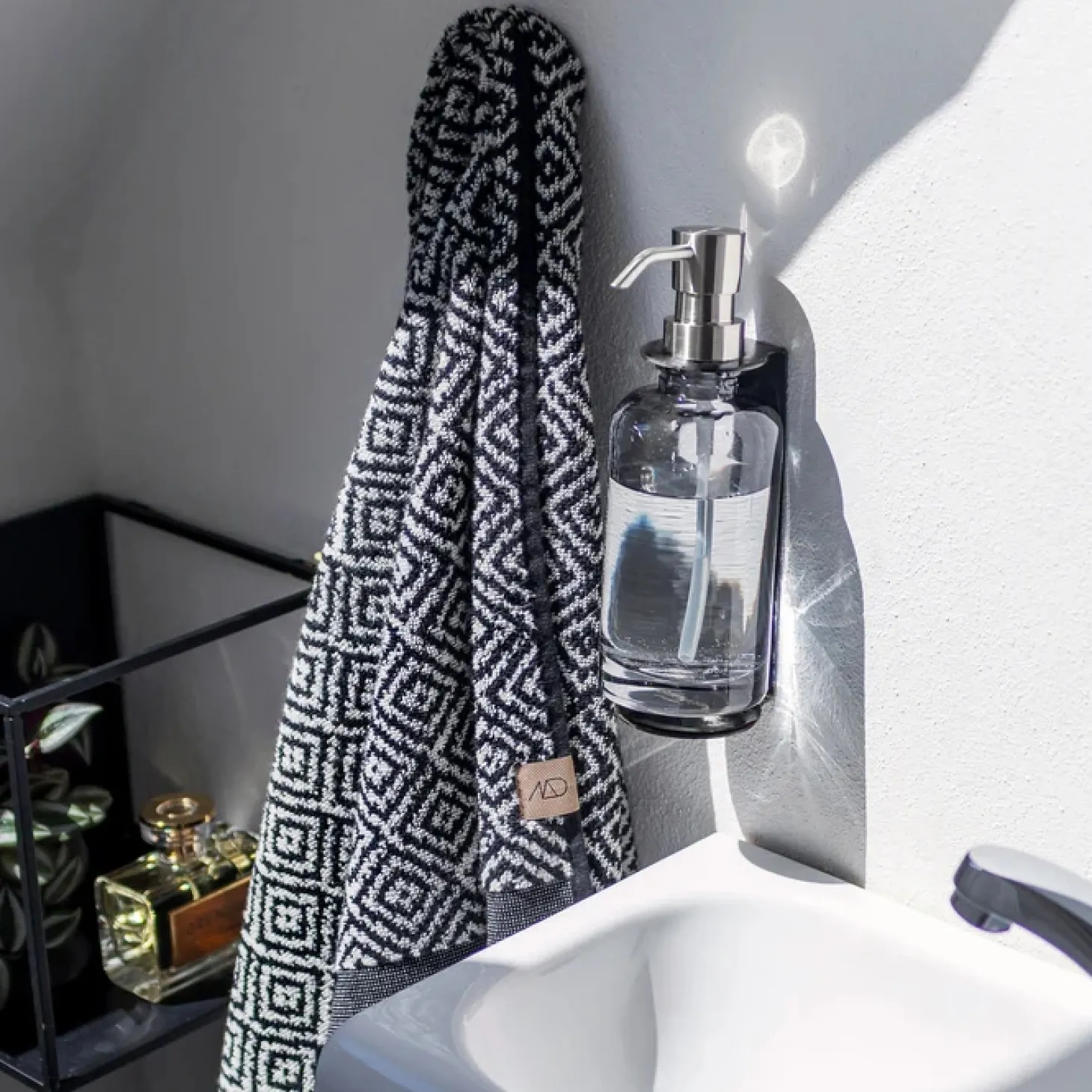 Vaskes ved 60 grader, tørretumbles ved maksimal varme, undgå skyllemiddel.