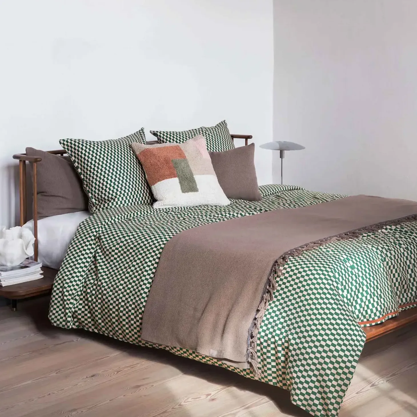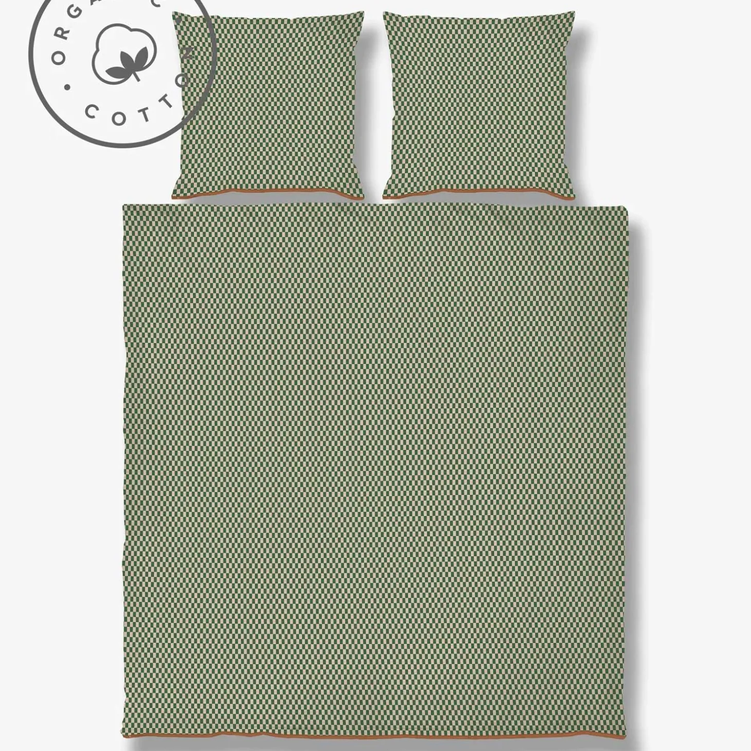 Tilføj et strejf af sofistikeret luksus til dit soveværelse med MINI-sengetøjet, der kombinerer tidløs elegance med moderne design. MINI-sengesættet fra Mette Ditmer præsenterer små tern i grøn og sart brun, som skaber et moderne grafisk look, der bringer et friskt pust til indretningen i soveværelset. Den klare rustfarvede YKK-kvalitetslynlås tilføjer et unikt blikfang og viser den omhu, der er lagt i hver eneste detalje.
