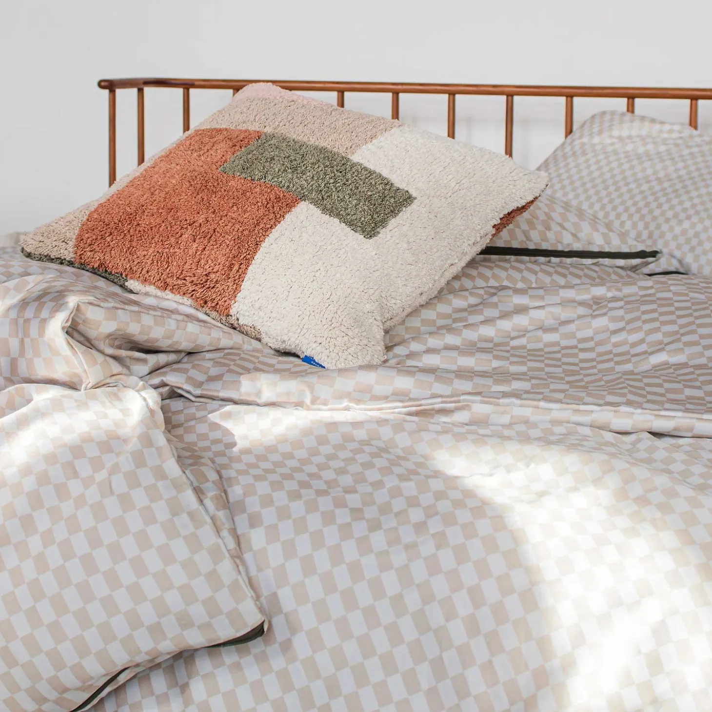 Skab en indbydende og elegant atmosfære i dit soveværelse med MINI-sengesættet. Sengesættet fra Mette Ditmer er designet med små tern i en varm sandfarve og lys grå, hvilket giver et moderne grafisk look, der tilfører dit soveværelse et sofistikeret præg. Den mørke olivengrønne lynlås tilføjer et smukt blikfang og viser den omhu, der er lagt i hver eneste detalje. På både pude- og dynebertræk er der valgt en YKK-lynlås, garanterer den højeste kvalitet.