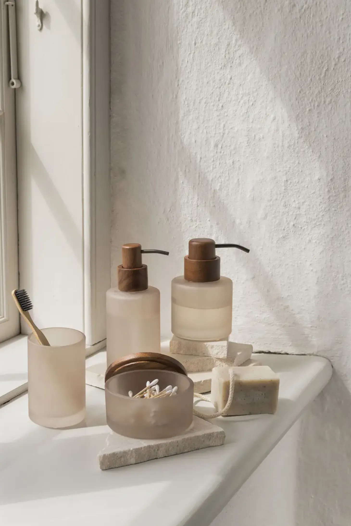Forfin dit badeværelse med MODEST-sæbedispenseren fra Mette Ditmer i den smukkeste kitfarve. Den høje, elegante dispenser er designet med en mat, transparent finish, der giver et moderne udtryk. Træpumpen, behandlet med mat lak for øget holdbarhed, har bløde afrundede kanter, der understreger det æstetiske design. En skinnende gunmetal-tud sikrer en effektiv og stilfuld sæbedosering. MODEST er den perfekte sammensmeltning af materialerne glas, træ og metal og skaber en visuelt smuk og praktisk dispenser, ideel til enhver moderne indretning.