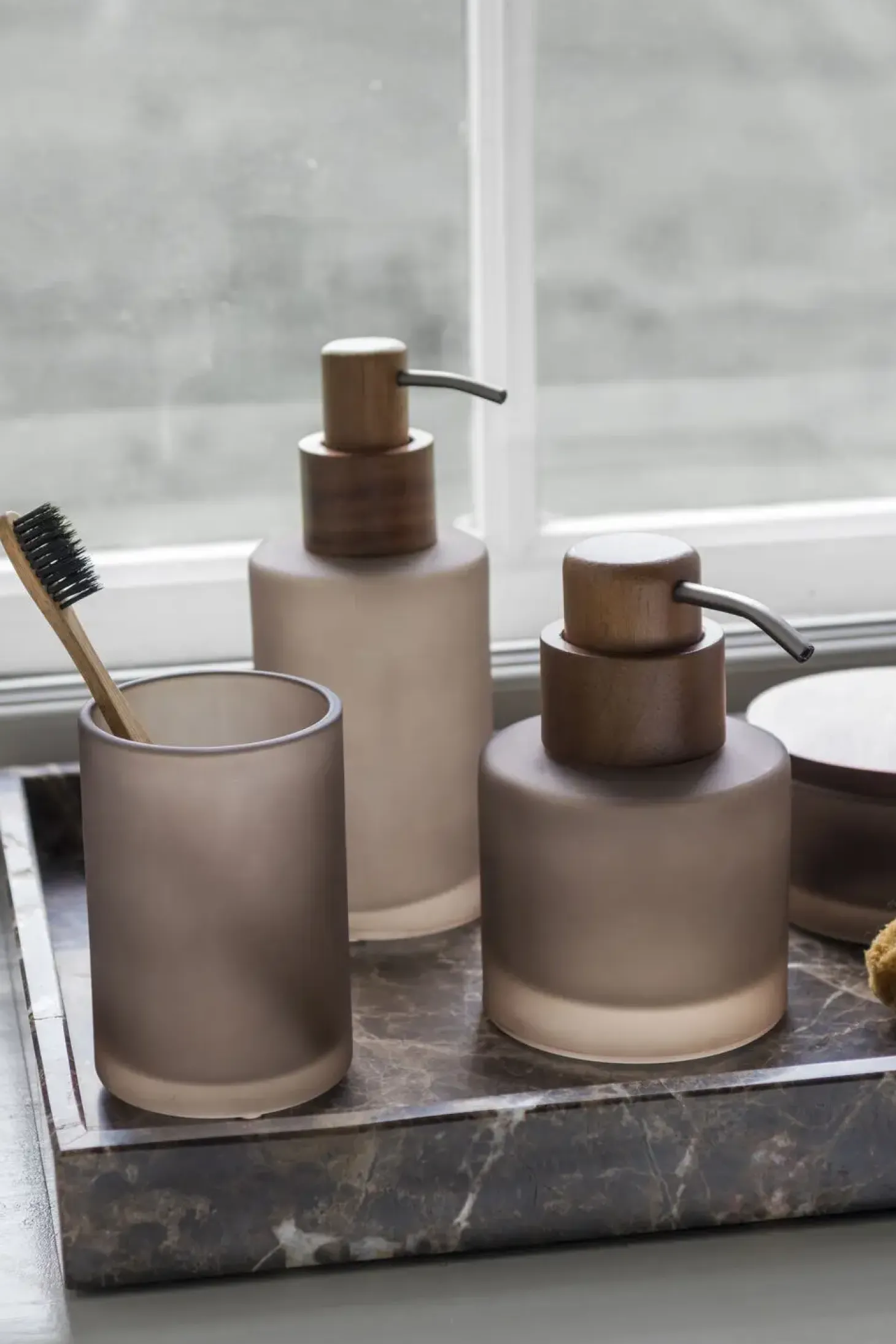 Tilføj en følelse af luksus i dit hjem med MODEST-tandbørstekruset fra Mette Ditmer i farven valnød. Kruset er designet i slankt, mat og transparent glas, der giver et elegant og moderne udseende. Det er perfekt til at holde dine tandbørster organiserede på badeværelset, men kan også bruges som holder for skriveredskaber på kontoret eller som en stilfuld lille vase i hjemmets øvrige rum. Dets alsidige og æstetiske design gør det til en ideel tilføjelse til ethvert rum, hvor der er behov for et strejf af elegance.