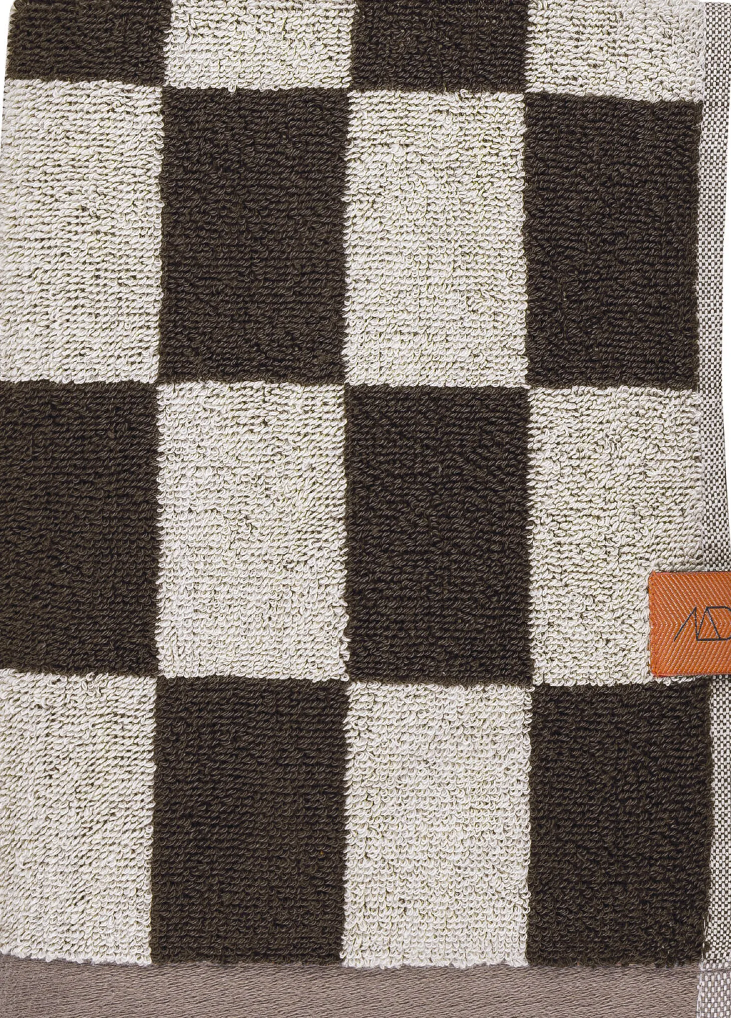 Opgrader dit badeværelse med et elegant og grafisk touch med RETRO-håndklædet fra Mette Ditmer. Håndklædet har en smuk brun og off-white farvekombination, fremhævet af en lysebrun kant. De gennemførte detaljer, som den orange strop og label, tilføjer karakter til din indretning.Fremstillet af 100% økologisk bomuld og OEKO-TEX® certificeret, kombinerer RETRO-håndklædet høj kvalitet med komfort. Mix og match med andre håndklæder i samme design eller ensfarvede håndklæder for at skabe et personligt og stilfuldt badeværelse.For at opnå maksimal absorberingsevne anbefales det at lægge håndklædet i blød i koldt vand i 24 timer inden første vask.