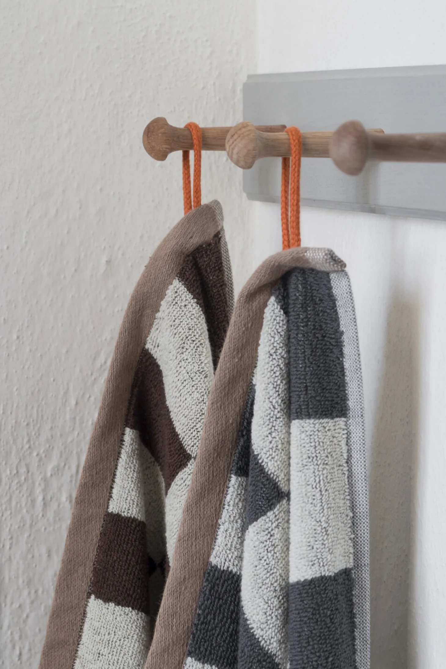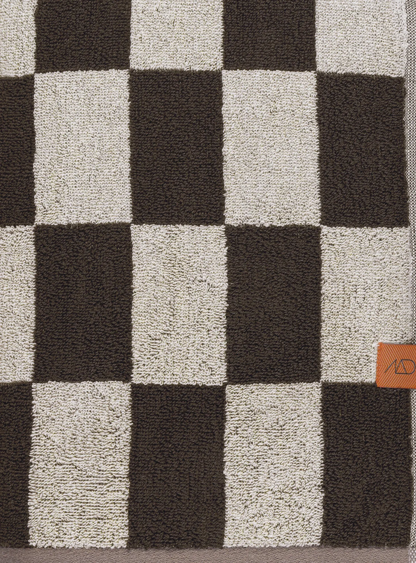 Opgrader dit badeværelse med et elegant og grafisk touch med RETRO-håndklædet fra Mette Ditmer. Håndklædet har en smuk brun og off-white farvekombination, fremhævet af en lysebrun kant. De gennemførte detaljer, som den orange strop og label, tilføjer karakter til din indretning.Fremstillet af 100% økologisk bomuld og OEKO-TEX® certificeret, kombinerer RETRO-håndklædet høj kvalitet med komfort. Mix og match med andre håndklæder i samme design eller ensfarvede håndklæder for at skabe et personligt og stilfuldt badeværelse.For at opnå maksimal absorberingsevne anbefales det at lægge håndklædet i blød i koldt vand i 24 timer inden første vask.
