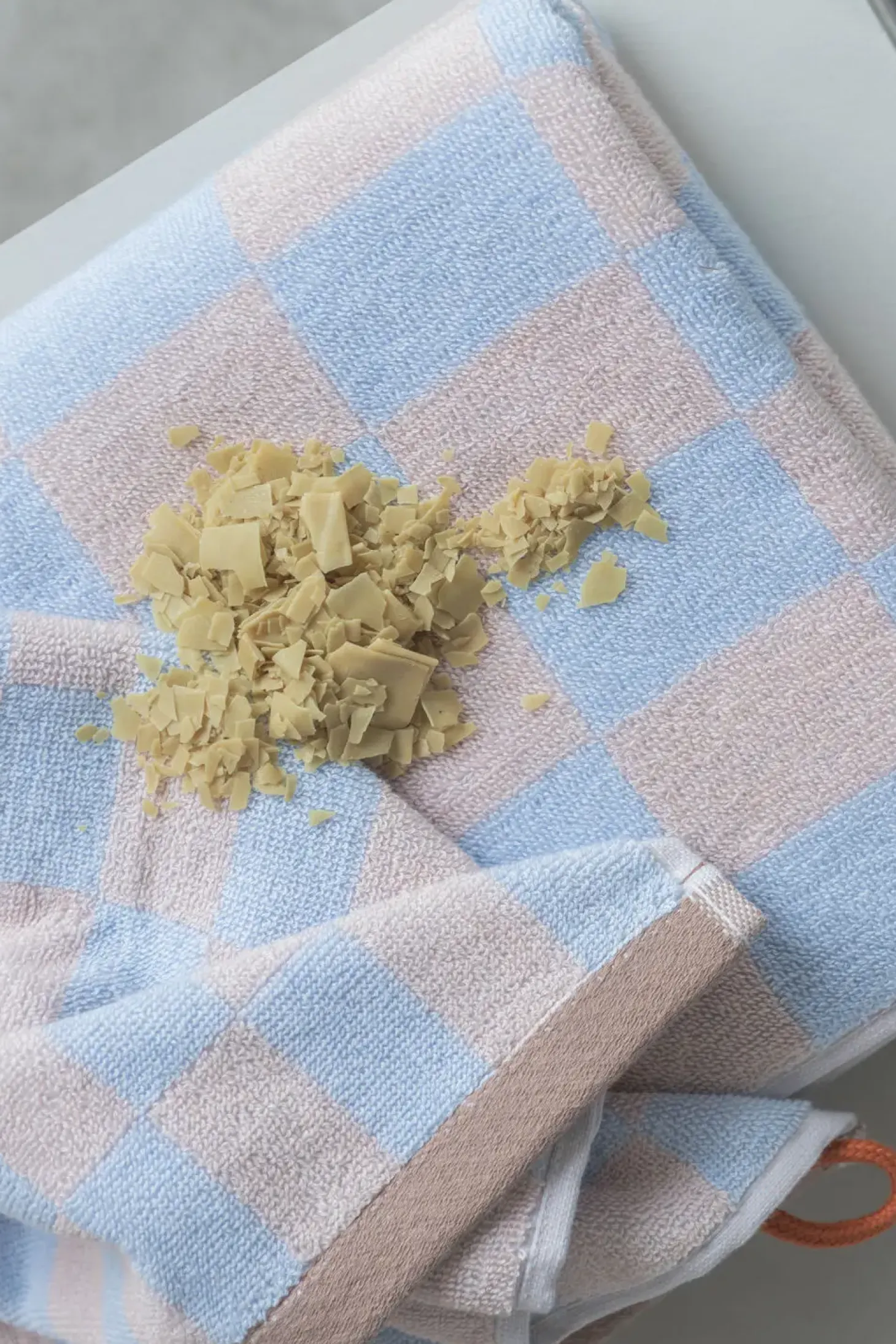 Vaskes ved 60 grader, tørretumbles ved maksimal varme, undgå skyllemiddel.