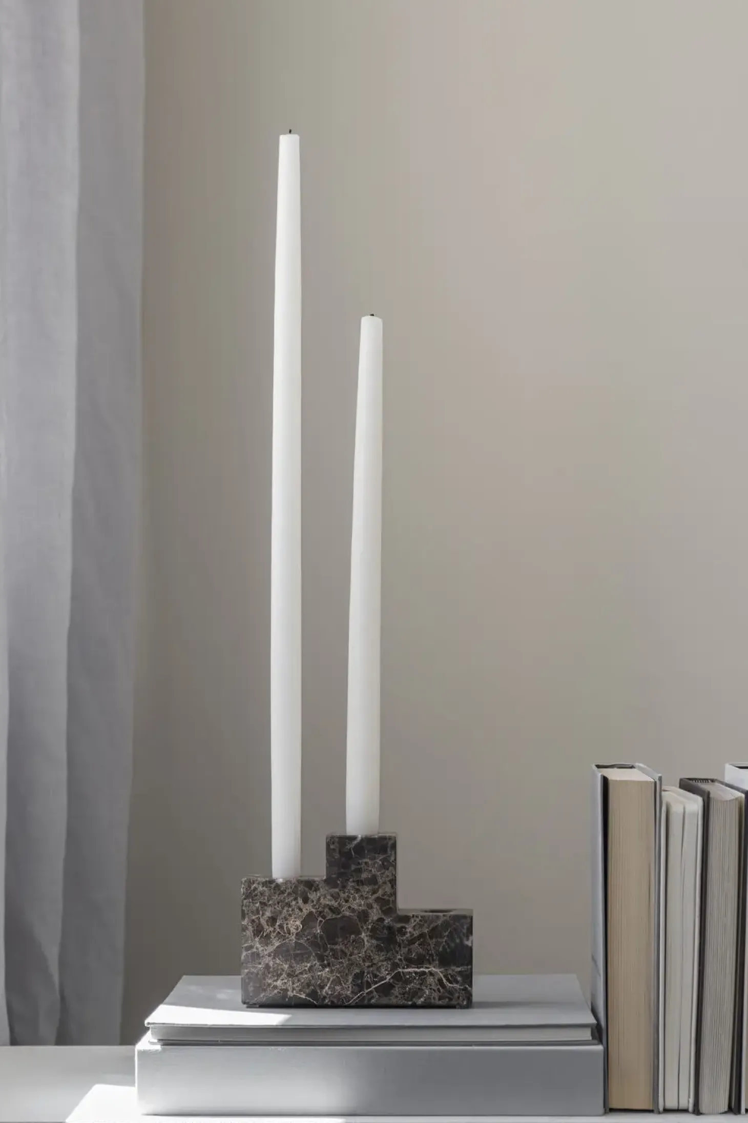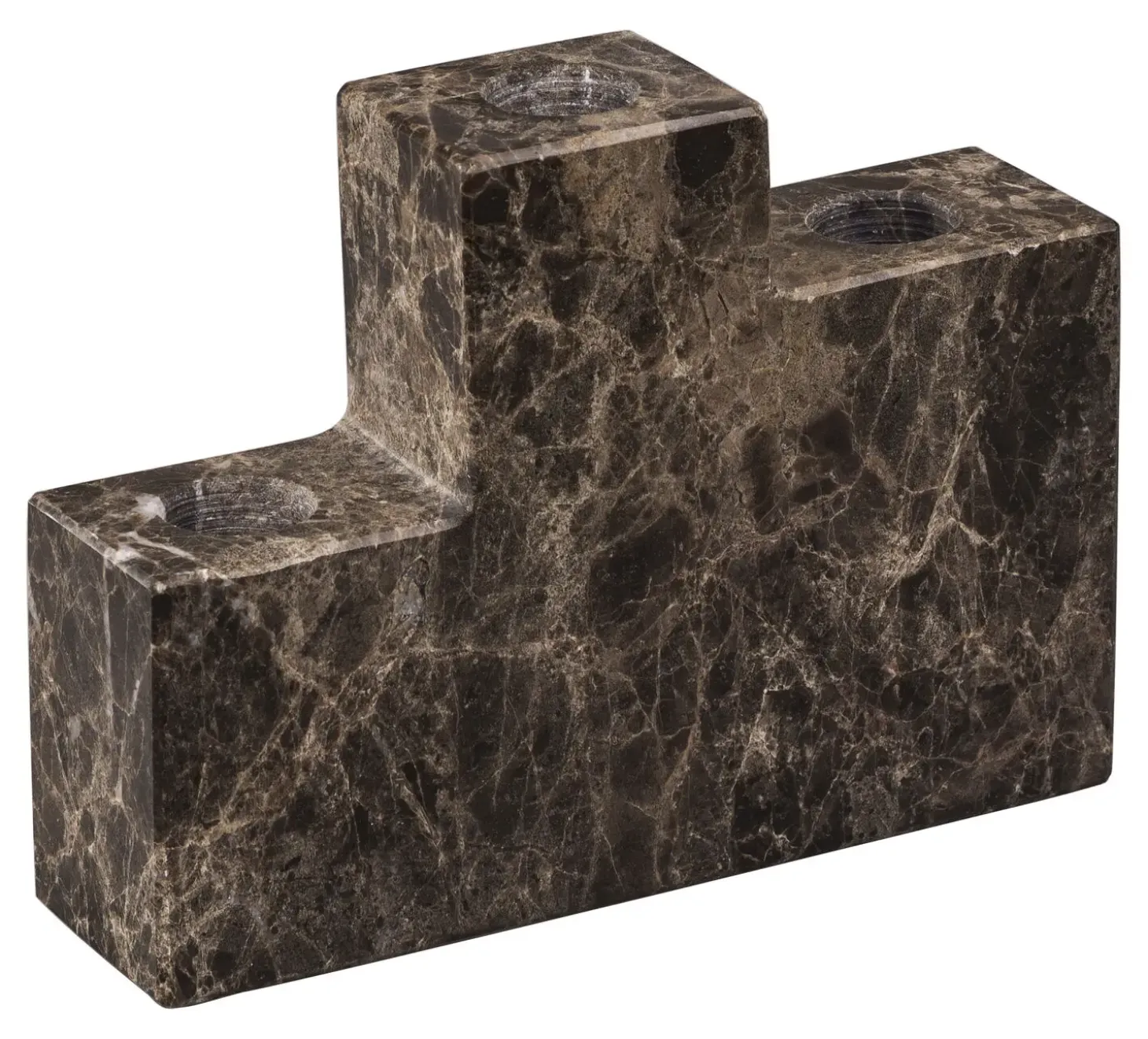 Forkæl dit hjem med et strejf af underspillet elegance med den stilfulde STEP-lysestage fra Mette Ditmer, designet til at rumme tre kronelys. Fremstillet af brunt marmor, byder hver lysestage på enestående farvevariationer og mønstre, hvilket gør hvert eksemplar til et unikt kunstværk. Marmorens glatte og rene overflade tilfører særlig elegance, samtidig med at den fremhæver materialets robusthed og dets tidløse skønhed.Mere end blot en funktionel genstand, er STEP-lysestagen et stykke dekorativ kunst. Den står smukt alene eller i selskab med andre stager, og tilfører et strejf af luksus og elegance til enhver indretning. Perfekt til at skabe en hyggelig atmosfære både til hverdagsbrug og til særlige lejligheder, sikrer dens klassiske materialer, at den kun bliver smukkere med tiden.