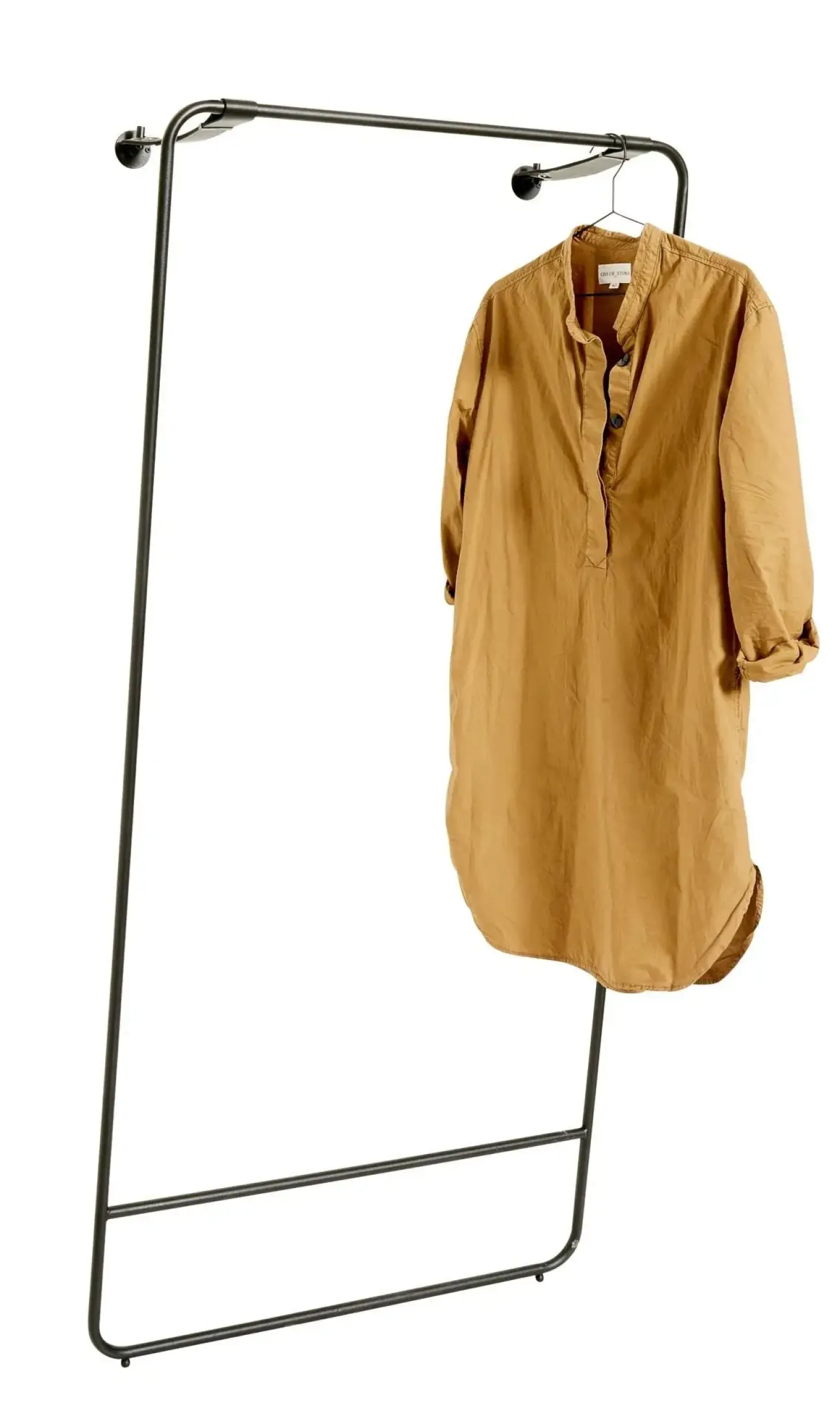 Med sine slanke mål passer stativet godt ind i selv små rum. Dets minimalistiske design er skabt med fokus på funktionalitet og æstetik. Læderstropperne giver mulighed for at vippe det ind mod væggen, når det ikke er i brug, hvilket optimerer pladsen. Dette tøjstativ er ideelt for dem, der søger en praktisk og stilren løsning til deres garderobeopbevaring.