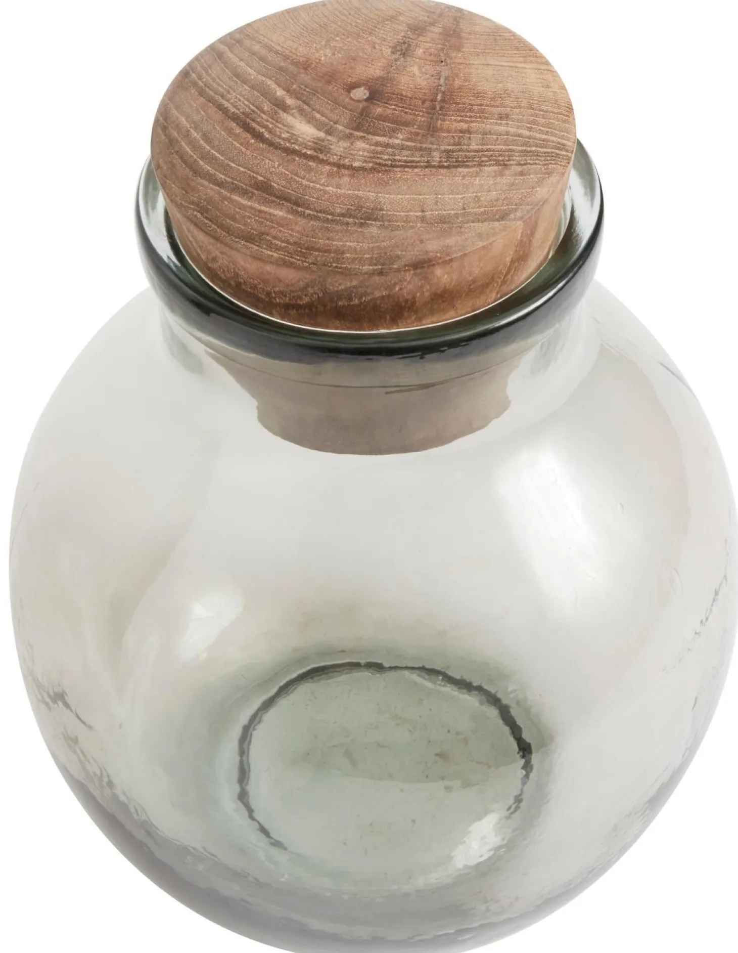 Smart og enkel glas beholder med teaklåg. Smoke krukken er et funktionelt og elegant tilbehør til hjemmet. Smoke har sit navn fra det semitransparente glas med den elegante grå tone. Brug krukken i køkkenet eller til opbevaring af nips eller hobby artikler. Kombiner krukken Smoke i medium med andre Muubs vaser og krukker i forskellige former og størrelser som passer til dine behov og din personlige stil.