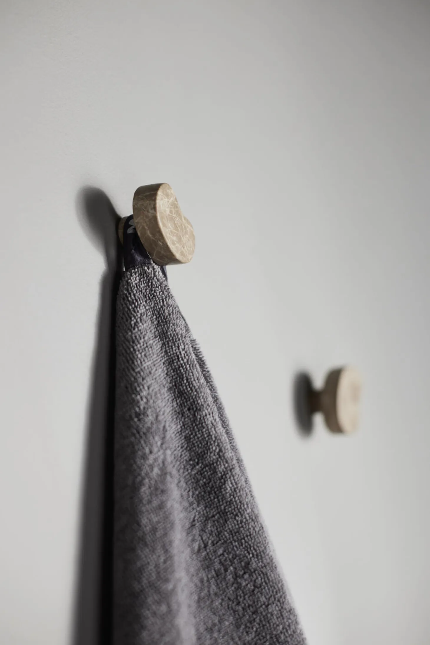 De smukke, kurvede Suji knager er skabt med kærligheden til naturlige former og den unikke marmorering bærer spor af naturens udformning, der skaber en smuk mosaik. Med bløde kurver, bringer Suji knagerne et tidløst og kunstnerisk element til indretningen. Knagerne er ideelle til overtøj i entreen, håndklæder på badeværelset eller viskestykker i køkkenet.Knagernes organiske form gør det muligt at montere dem i forskellige vinkler, hvilket skaber et dynamisk udtryk.De organiske knager er lavet af marmor, som er en natursten og derfor kan der forekomme naturlige variationer i farven. Suji knagerne leveres som et sæt med 2 stk.