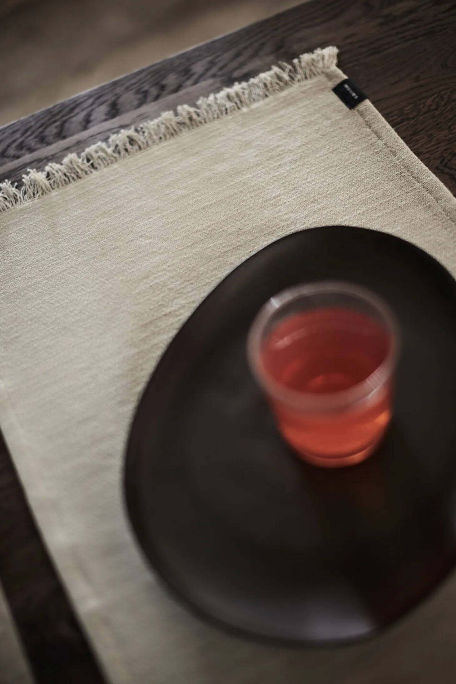 Inspireret af det japanske ord for velsmag, er Umami en serie af køkkentekstiler, designet i en eksklusiv og diskret sildebensstruktur.Umami dækkeservietten har et enkelt og tidløst udtrykt og er skabt af økologisk bomuld. De dekorative frynser på to sider giver de dækkeservietten et enkelt, uformelt og håndlavet udtryk.Dækkeservietten er et perfekt supplement til en personlig og naturinspireret borddækning og tilbyder en både praktisk og æstetisk løsning. Brug dækkeservietten sammen med Umami mundservietten, der matcher eller skaber kontrast i borddækningen. Dækkeservietterne sælges enkeltvis. Plejeanvisning: Dækkeservietten kan maskinvaskes ved 60 grader. Størrelse: 50×36 cmMateriale: 100% økologisk bomuld. Design: Kira Usbeck