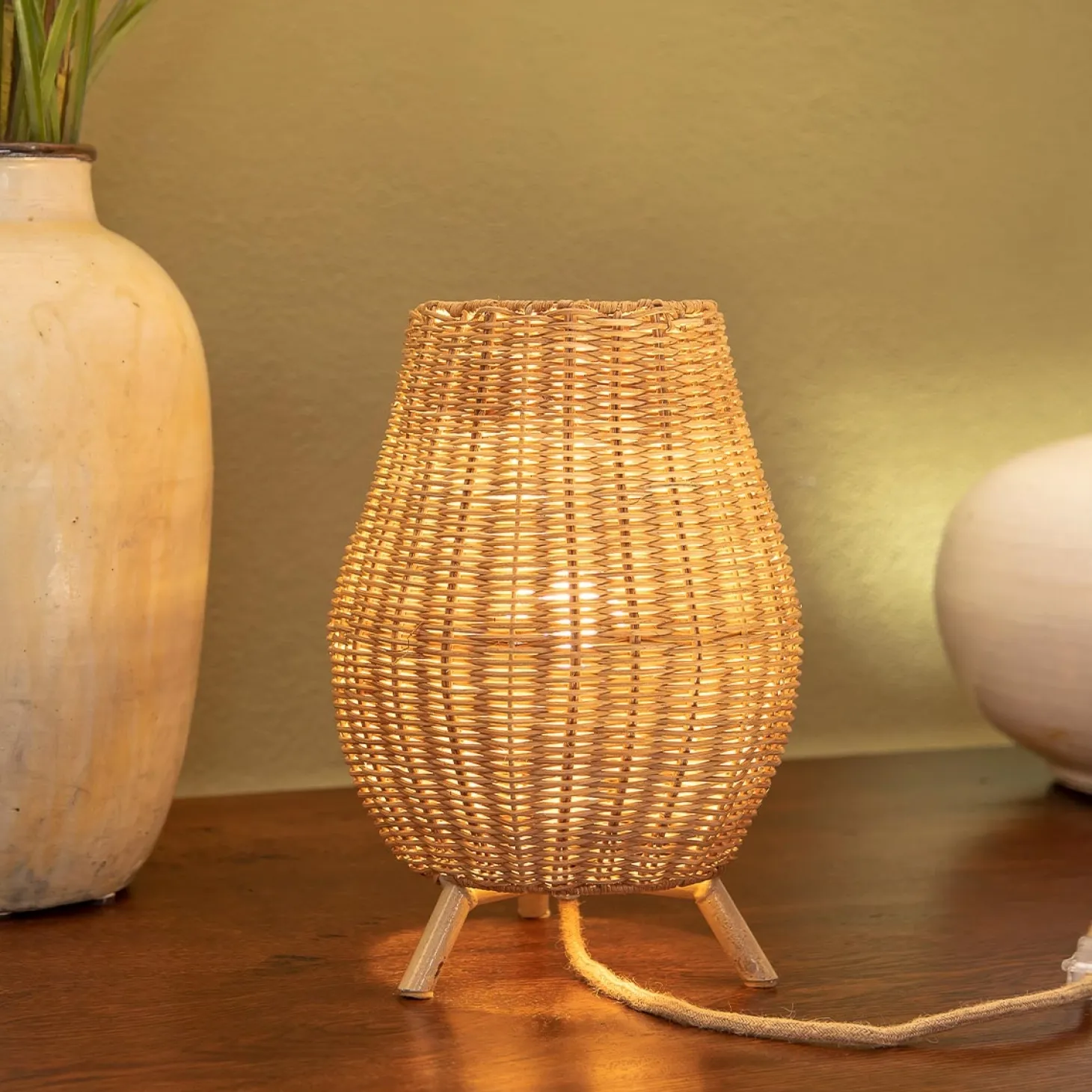 Denne Saona 30 trådløse bordlampe er håndflettet af naturfibre. Lampen er det perfekte supplement til at oplyse ethvert rum i dit hjem eller i haven og tilfører et naturligt udtryk.