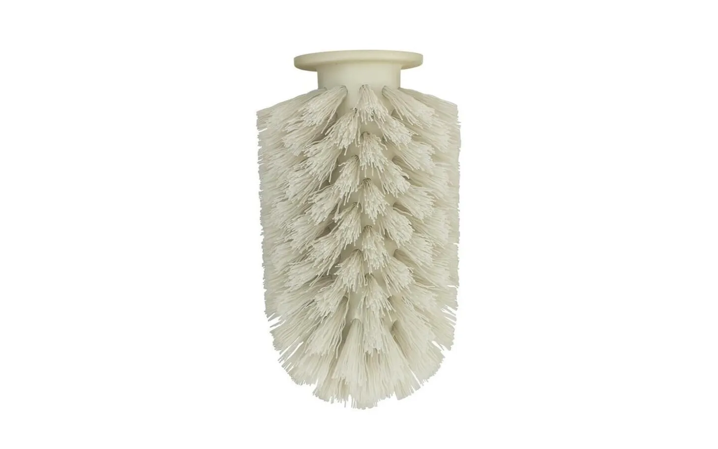 Dette børstehoved til Ballo-toiletbørsten har en særlig flad, cirkulær base, der sikrer stabil placering. Den cylindriske form med spiralformede børster giver en grundig og effektiv rengøring af toiletkummen.