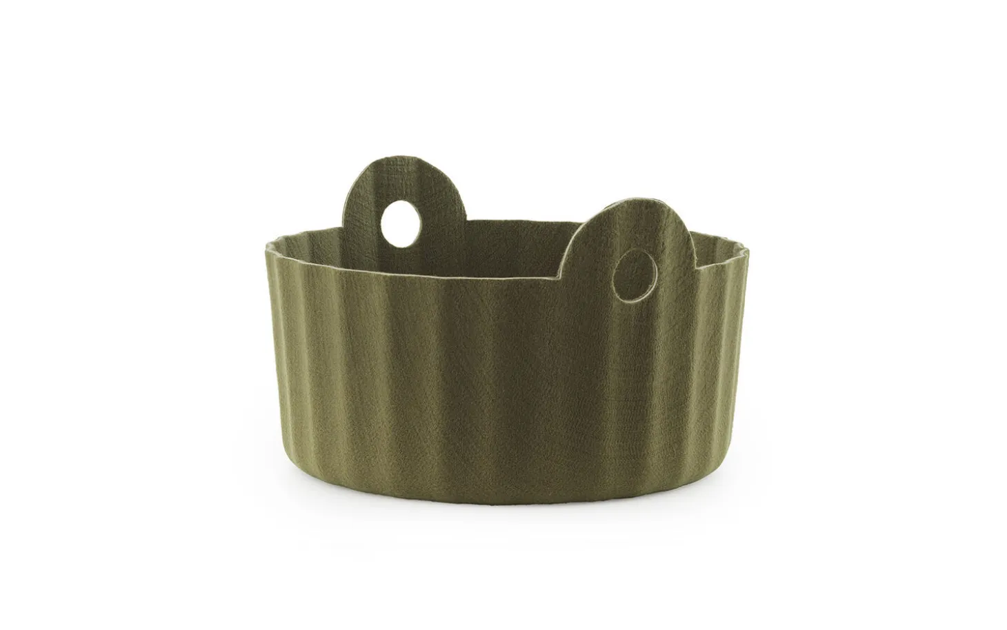 Genanvendt PET polyethylenterephthalat er anerkendt for sin styrke og modstandsdygtighed. Det betyder, at kurven kan håndtere daglig brug uden at miste formen. Den runde form med ribbet tekstur gør det nemt at placere kurven forskellige steder i hjemmet, hvor du har brug for ekstra opbevaring.