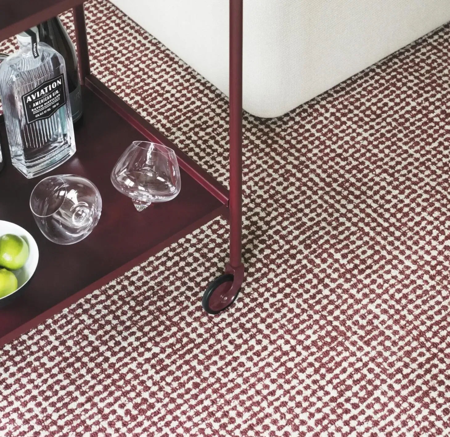 Mønsteret tilfører personlighed uden at dominere. Farvesammensætningen i off-white og bordeaux skaber en rolig base, der giver karakter til både private hjem og professionelle miljøer. Tæppet passer til forskellige indretningsstile.