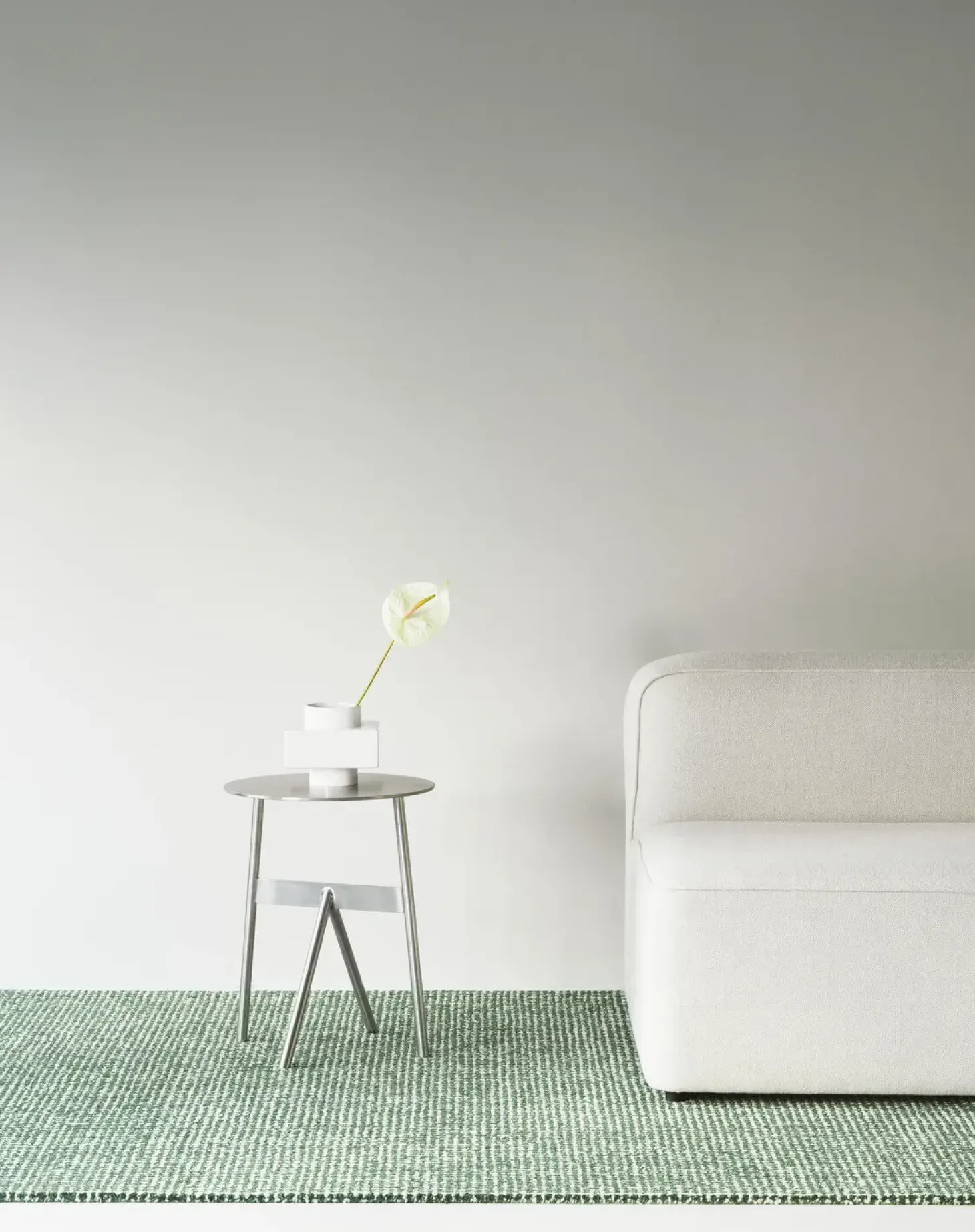 Den mørkegrønne og off-white farvekombination passer ind i både hjemlige og professionelle miljøer. Det strukturerede mønster tilfører karakter og dybde, mens det bevarer et roligt udtryk. Tæppet skaber en harmonisk overgang mellem forskellige rumområder.