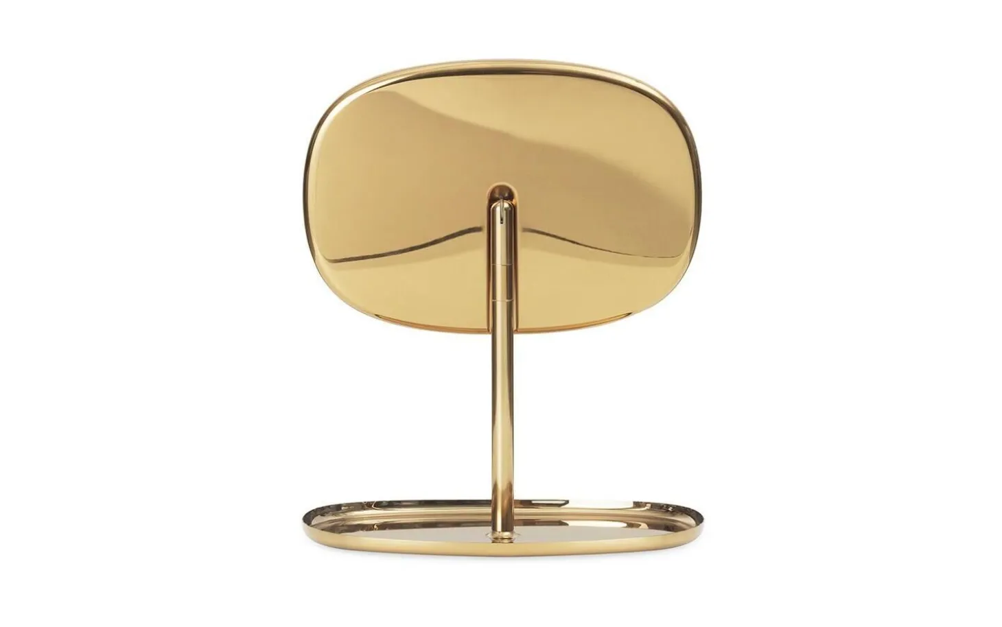 Flip Mirror forener funktionalitet med æstetik gennem sin enkle konstruktion. Stålrammen giver stabilitet, mens glasset sikrer en klar refleksion. Den gyldne finish tilfører et varmt udtryk til din indretning.