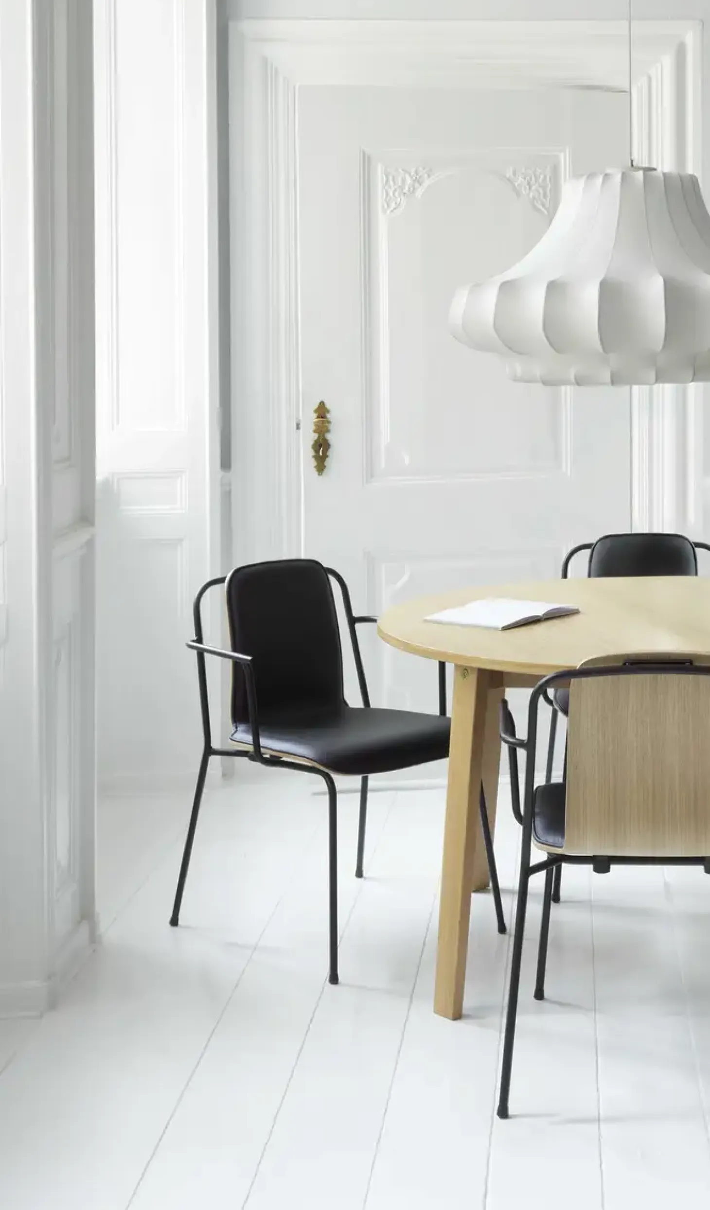 Det diffuse lys reducerer skarpe skygger og skaber en behagelig belysning i hele rummet. Den karakteristiske form gør lampen til et naturligt midtpunkt, mens lysets karakter bidrager til en rolig atmosfære.