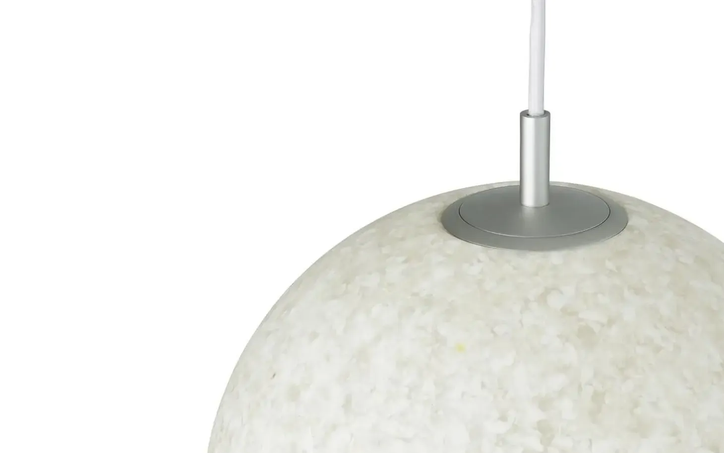 Denne kugleformede pendel er fremstillet af genanvendt plastik, der forvandles, når lyset tændes. Fra uigennemsigtig til transparent fremhæver lyset materialets særegne struktur og skaber et fascinerende spil af mønstre.