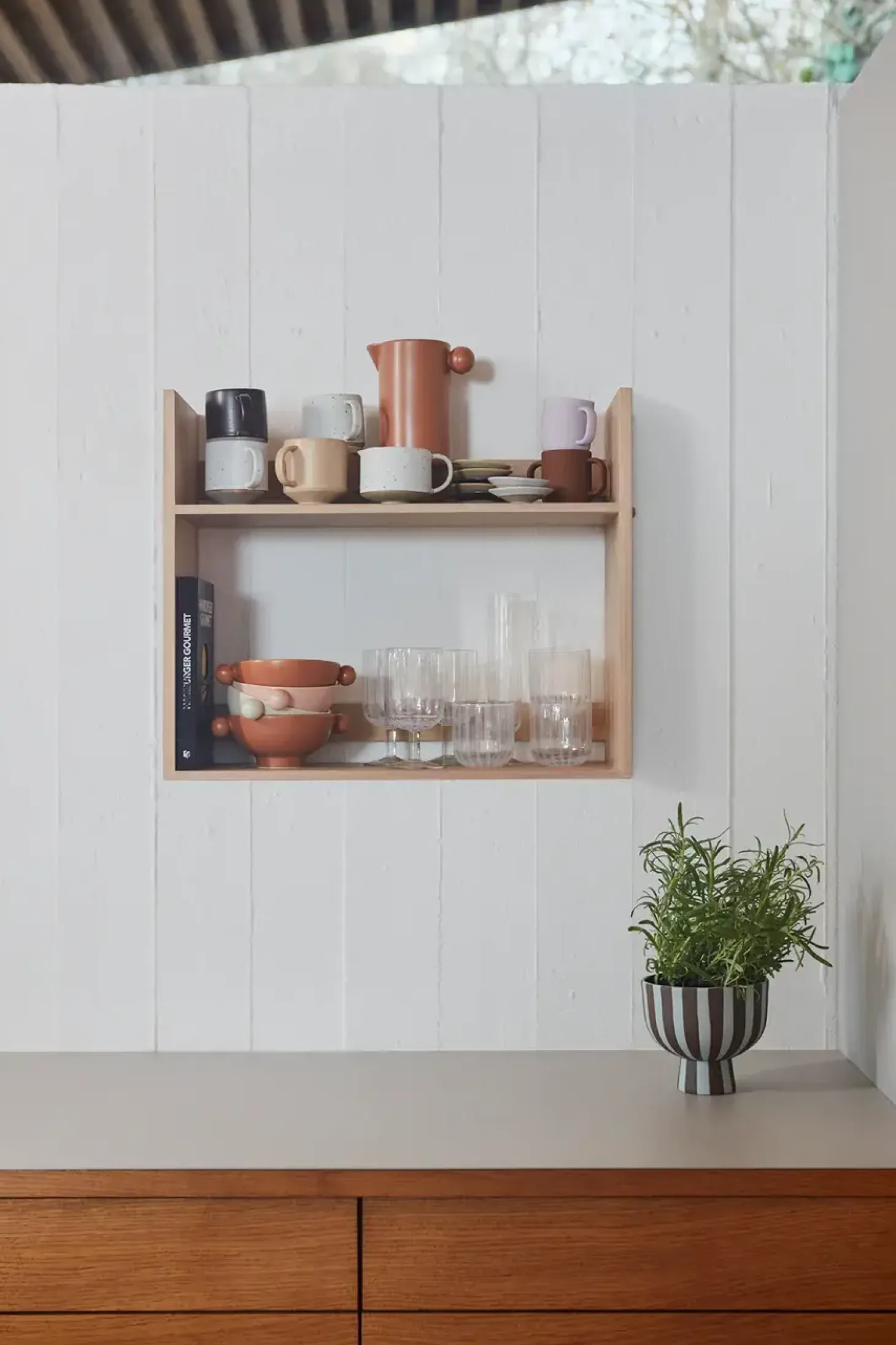 Lojo Shelf er en hylde i massivt egetræ. Egetræets smukke struktur samt varme farve, giver ro og sjæl til ethvert rum. Hylden er produceret i Europa, og kommer samlet således, at den er nem at hænge op. Brug Lojo hylden i køkkenet til kogebøger eller i stuen med dine forestrukne romaner eller magasiner. Skruer til montering er inkluderet (anbefales ikke til vægge af gips)