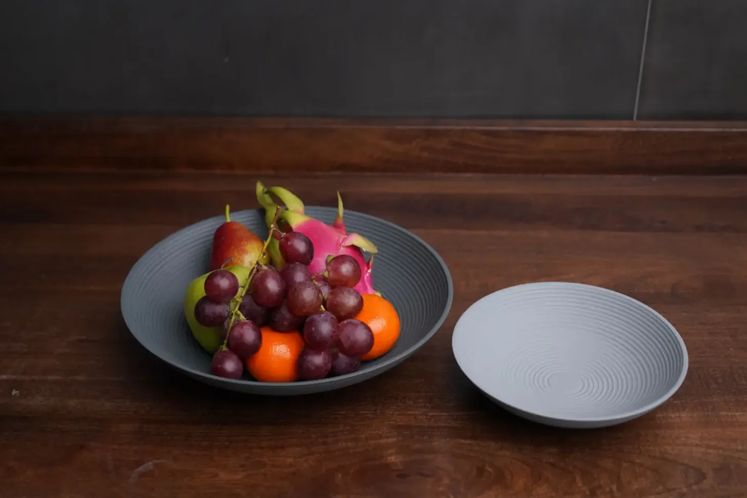 Skålen er fremstillet af pulverlakeret aluminium, hvilket giver den en robust overflade. Dette materiale er designet til at være holdbart og modstandsdygtigt over for daglig brug. Skålens enkle design og finish bidrager til dens æstetiske appel og gør den til et stilfuldt element i enhver borddækning.