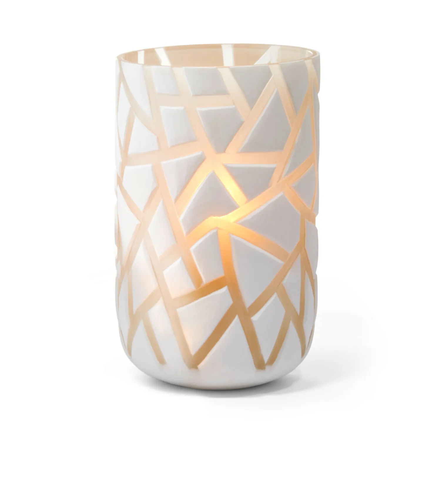 Philippi Val vase er en udsøgt vase lavet af hvidt og guld flash-glas. Designet er moderne og minimalistisk med et geometrisk mønster, der skaber et elegant udseende. Vasen har en vævet struktur, der giver et særligt spil mellem lys og skygge. Den er ideel til den moderne forbruger, der værdsætter stilfuld indretning.